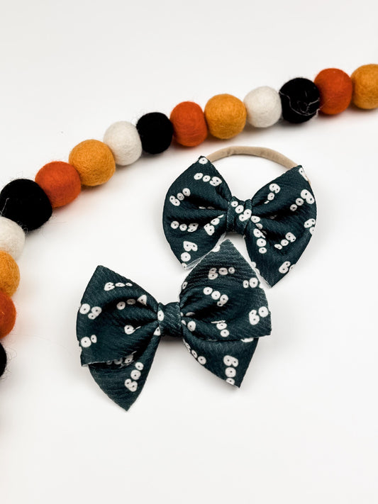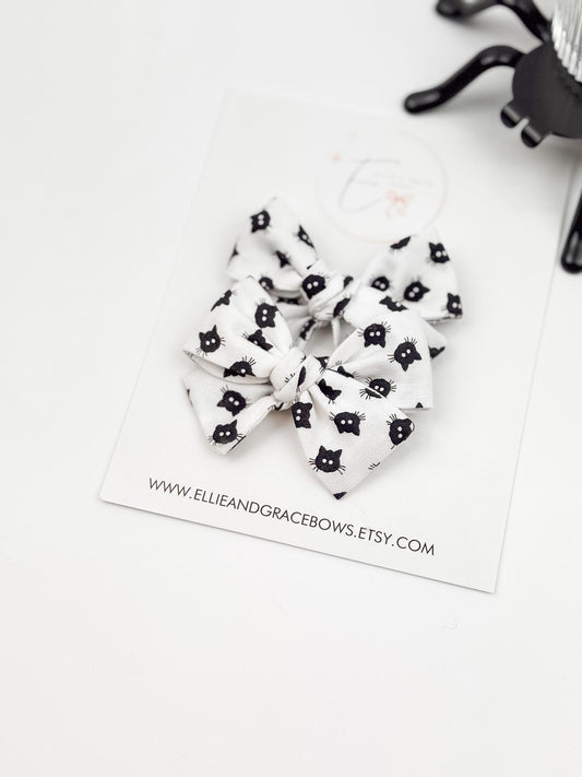 Black and White Spiderweb Bows - Cotton Fabric Halloween Hair Bows