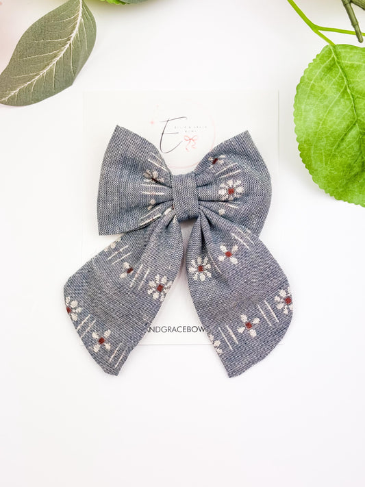 Blue Floral Pigtail Bow Set - Bows for Girls - Sailor Bows