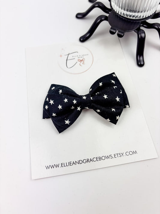 Black Star Halloween Bow – Cotton Fabric Hair Bow – 2 x 3.5 Inch Handmade Bow – Fall Hair Accessory – Girls Halloween Bow