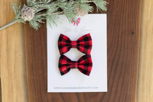 Buffalo Plaid Christmas Pigtail Bow Set - 2 Inch Hair Clips
