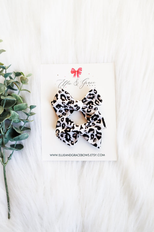 Cheetah Print Pigtail Bow Set: Cotton Alligator Hair Clips