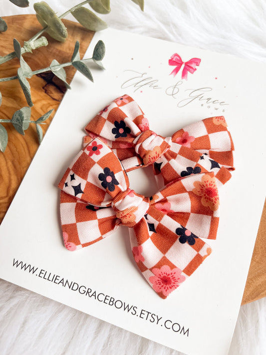 Checkered Flower Bows: Cotton Pigtail Clip Set