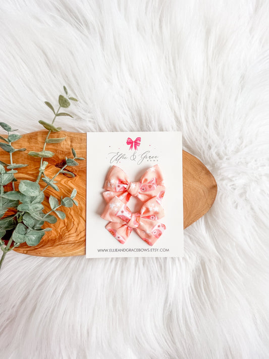 Christmas Flowers - Pigtail Bow Set - Cream and Red Bows for Girls