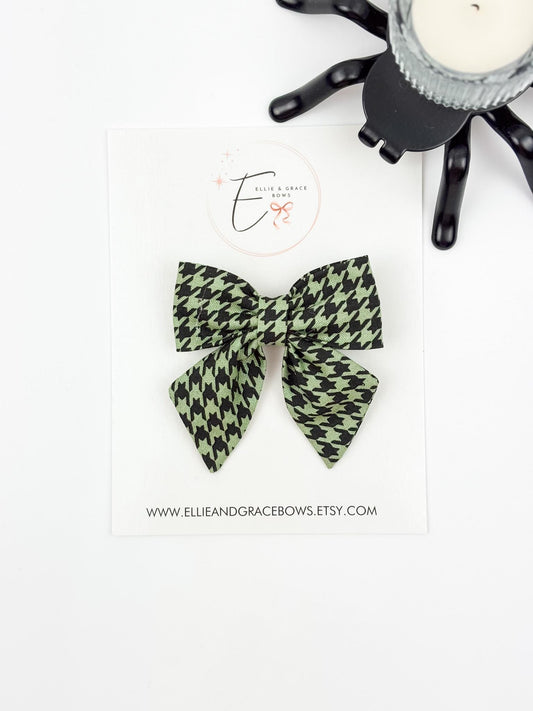 Green - Black Houndstooth Bow or Pigtail Set | Baby, Toddler & Girls Hair Accessories