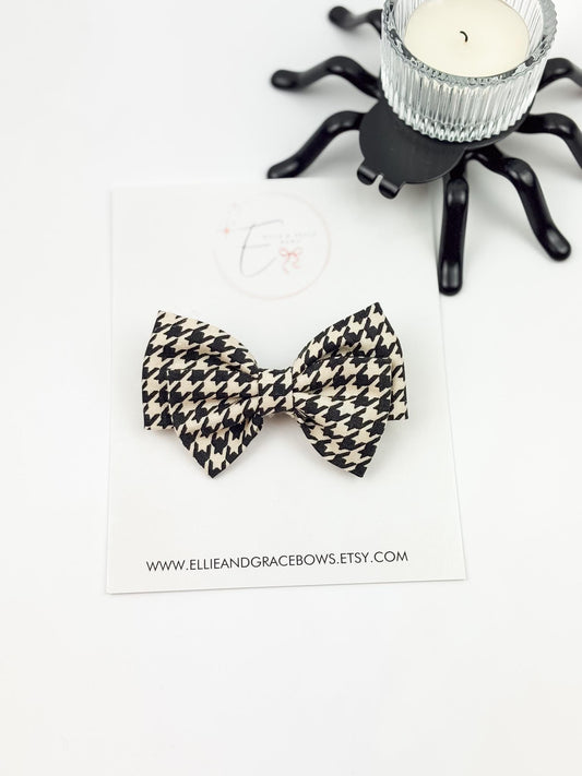 Halloween Cotton Hair Bow | Black & Ivory Houndstooth Bow