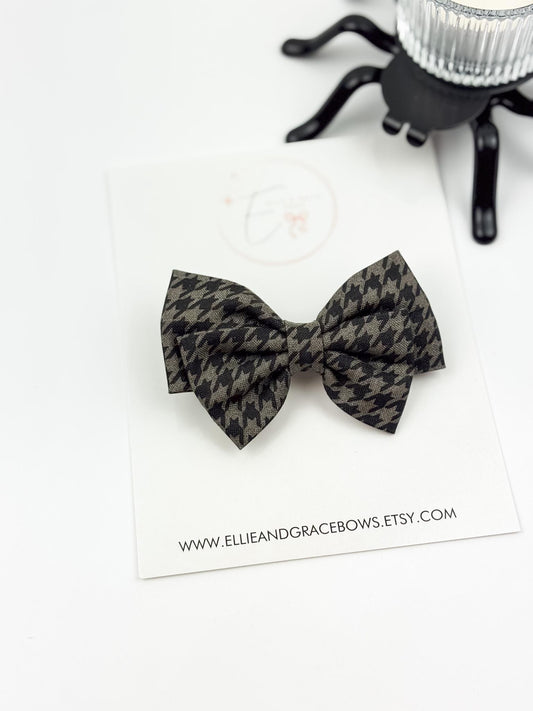 Halloween Cotton Hair Bow | Black & Gray Houndstooth Bow or Pigtail Set