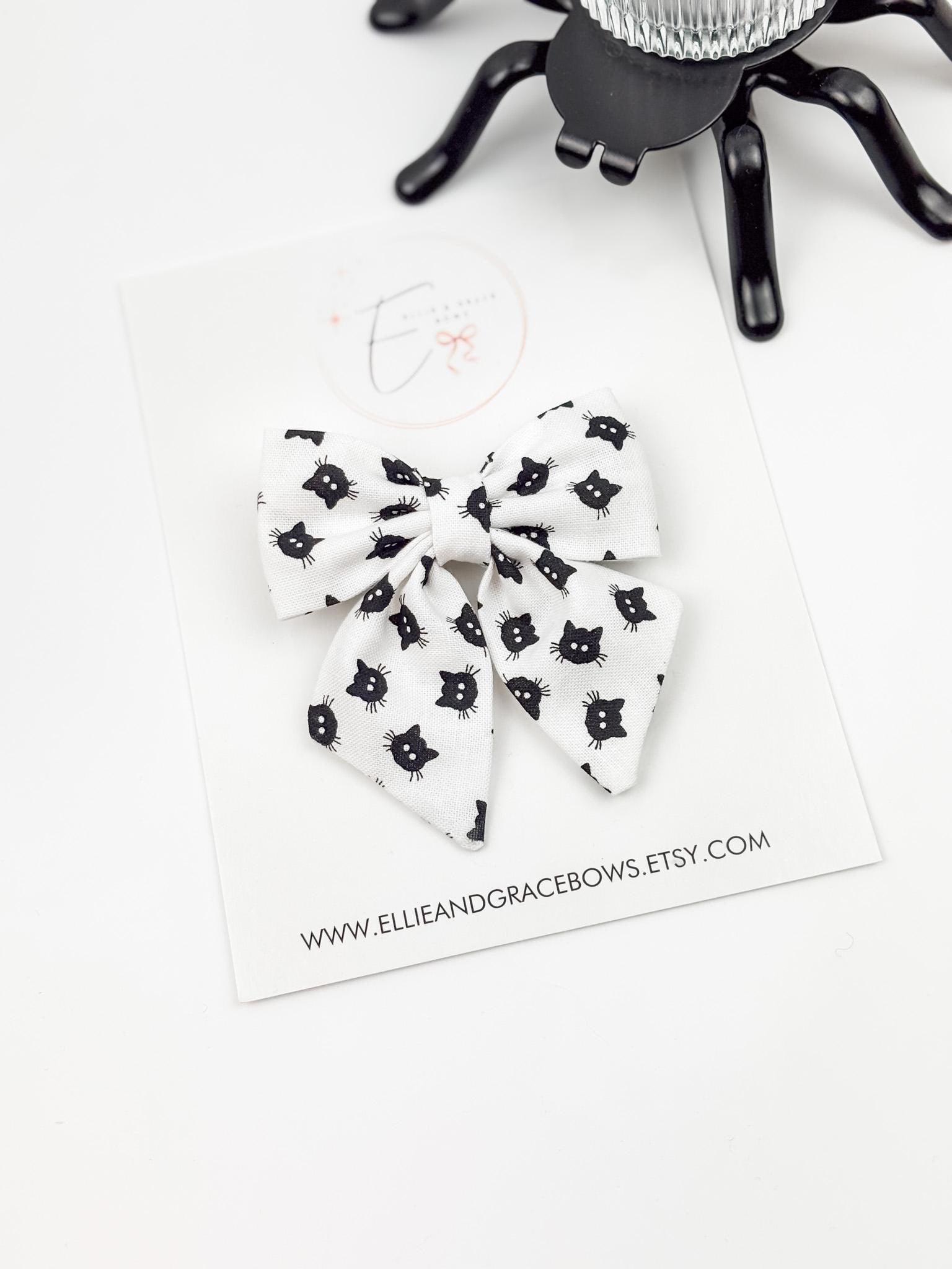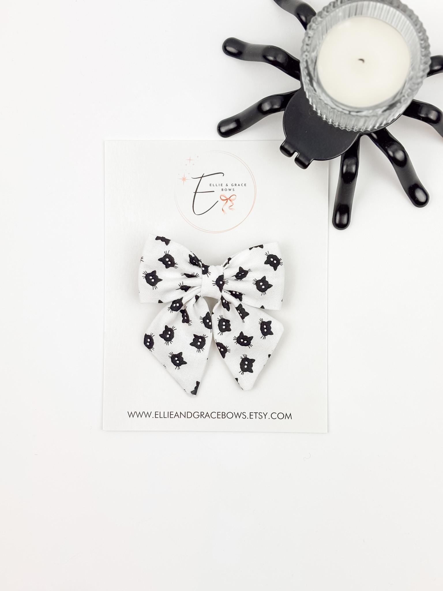 **Halloween Cotton Sailor Bow | Black Cat Hair Bow | Baby, Toddler & Girls Hair Accessories**
