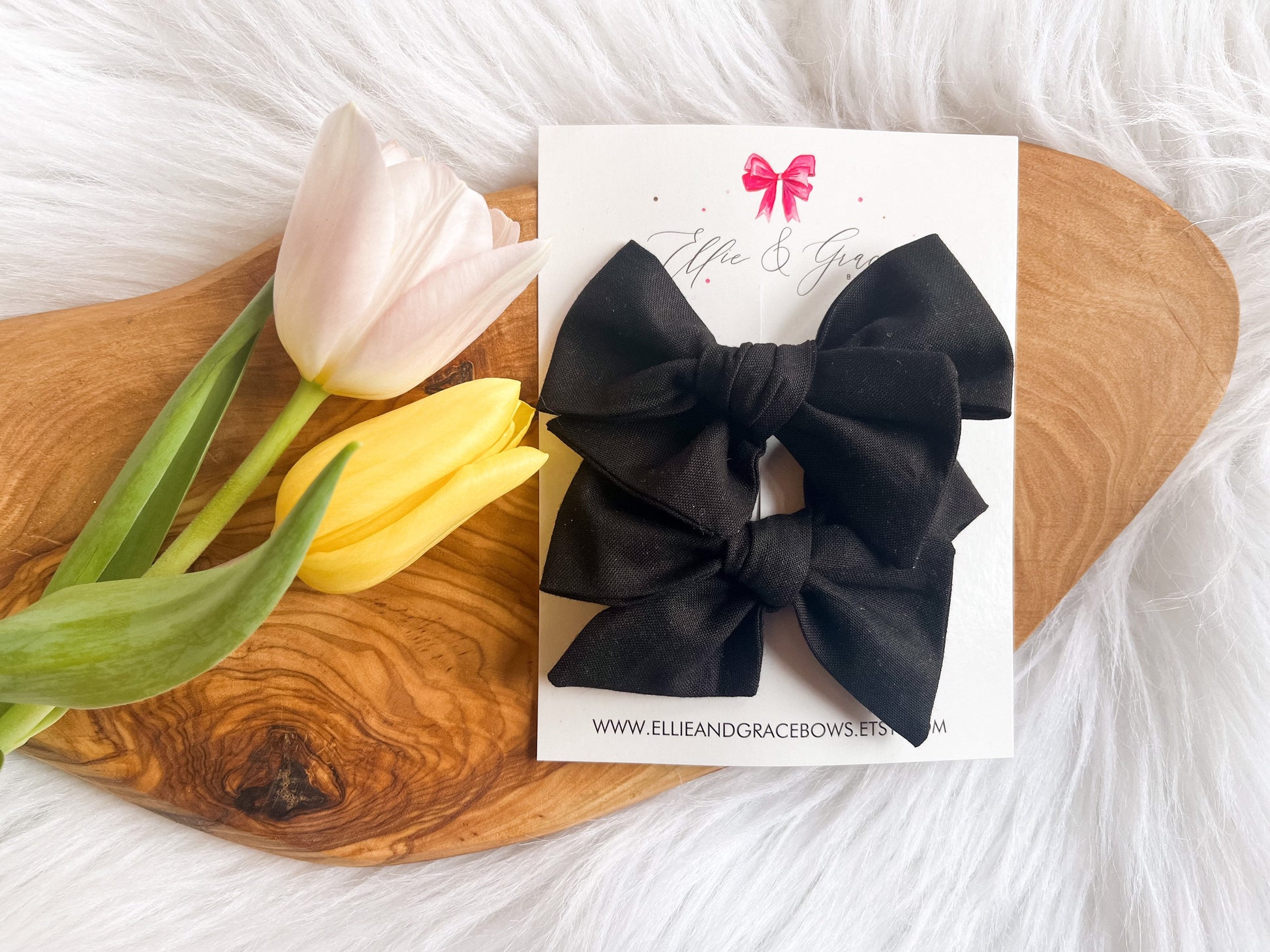Black Hair Bows - 4 Inch Bows - Hand Tied Baby Bow Headband