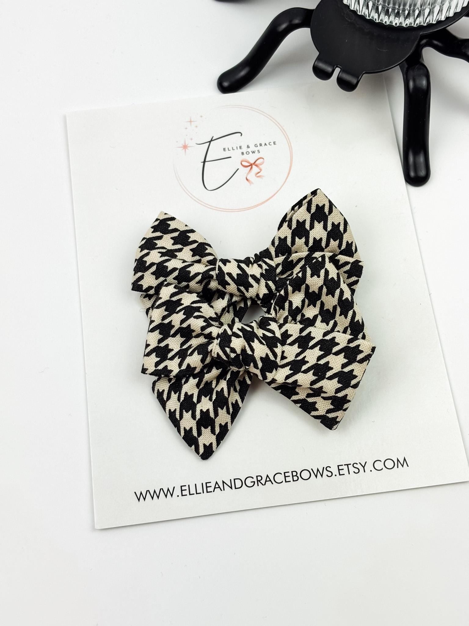 Black & Ivory Houndstooth Hair Bows