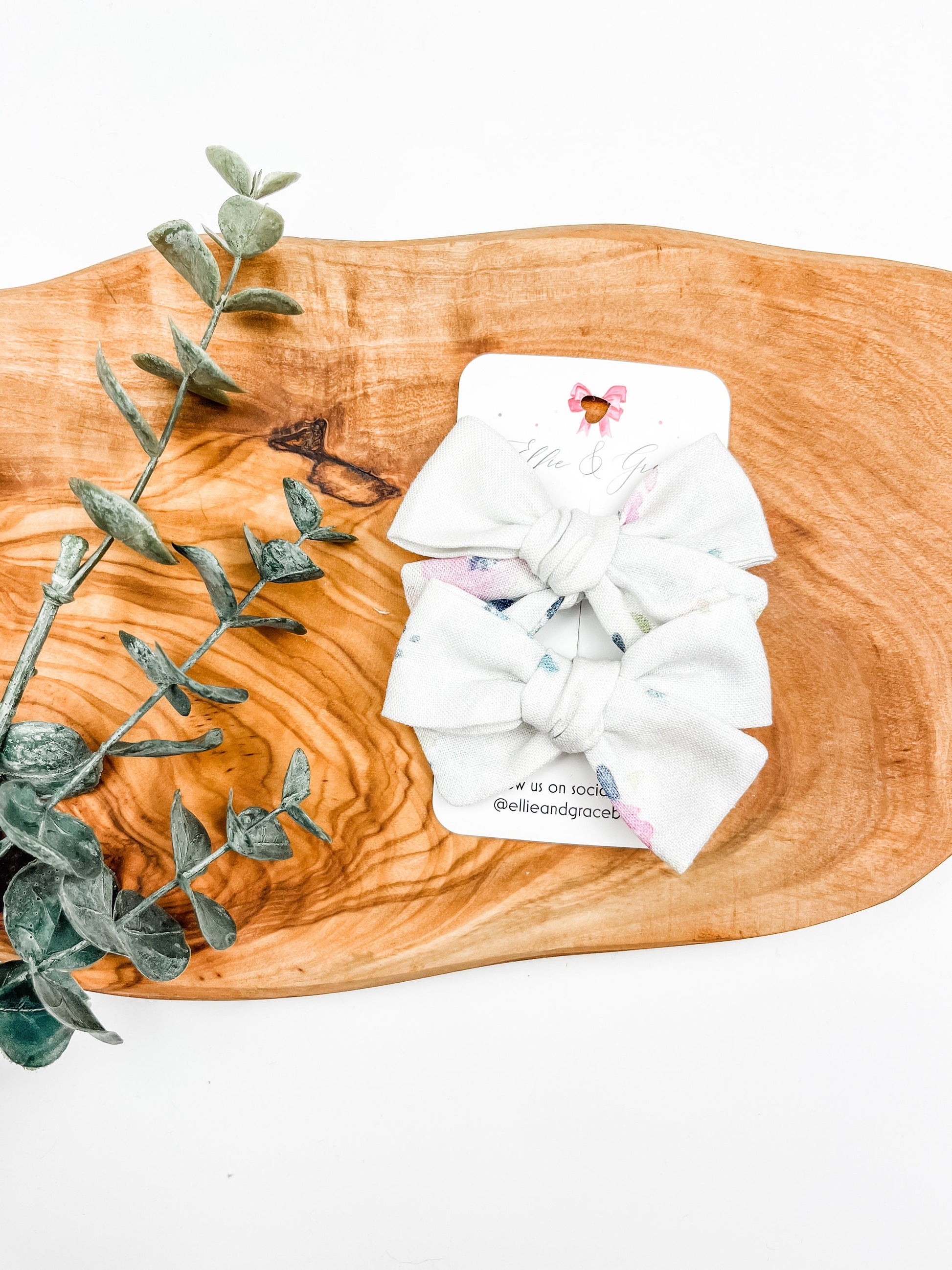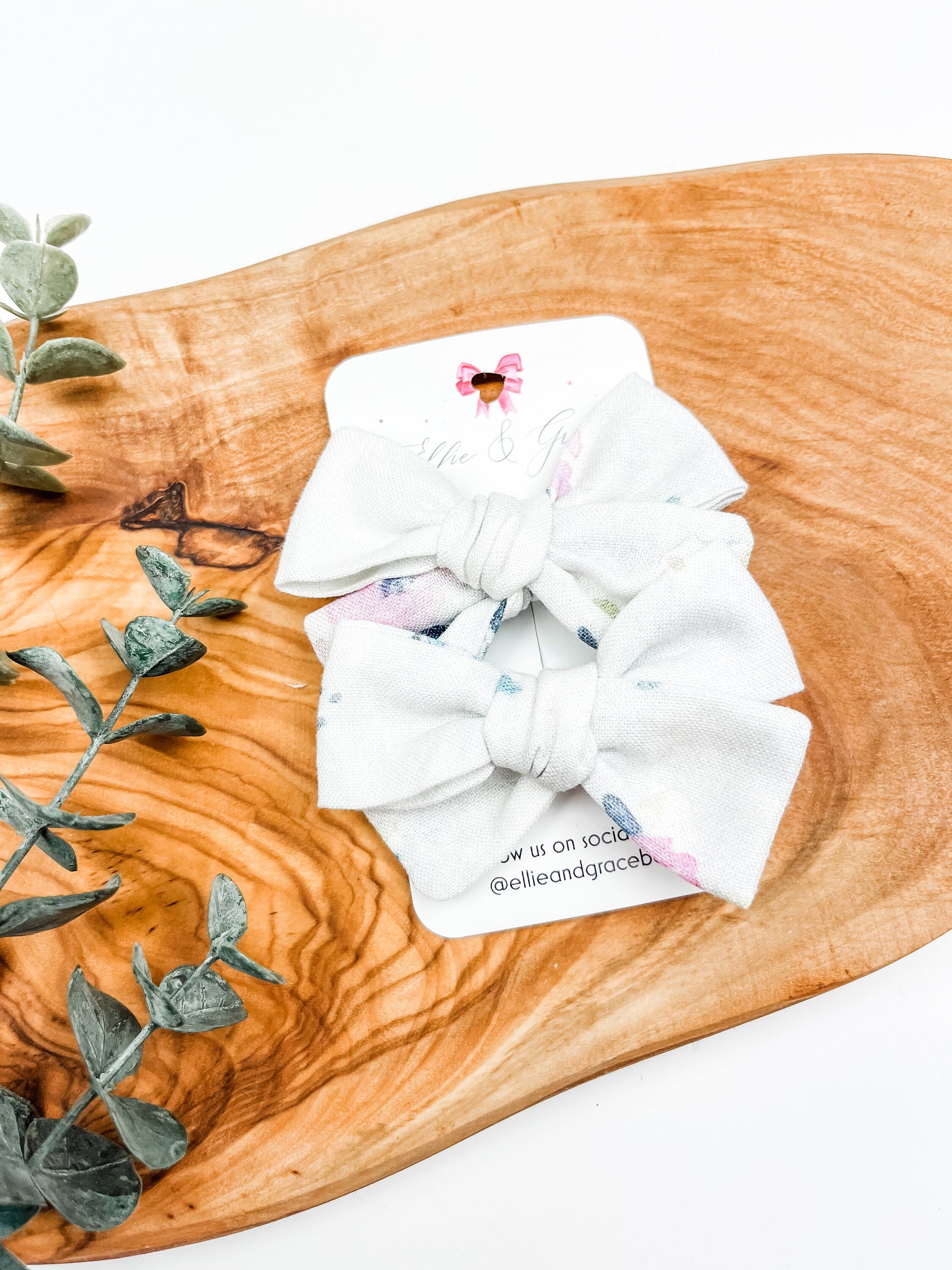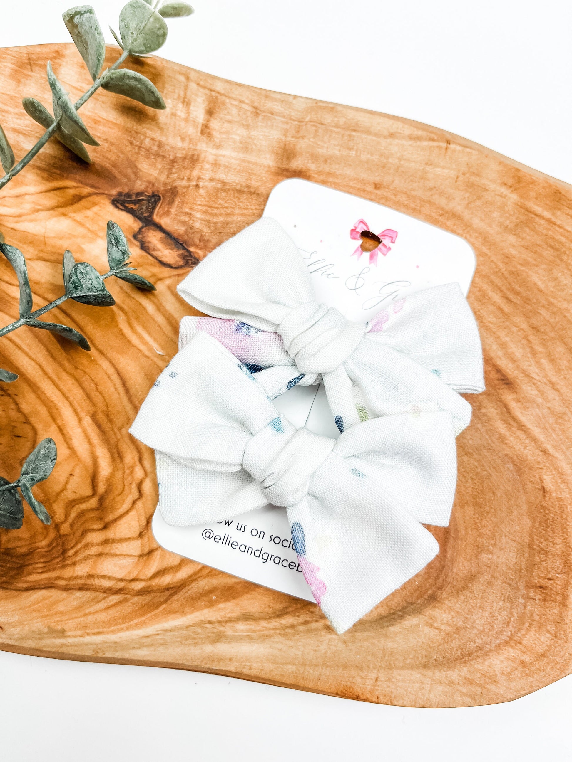 Blue Floral Pigtail Bows - Pigtail Bow Set - Baby Girl Summer Outfit