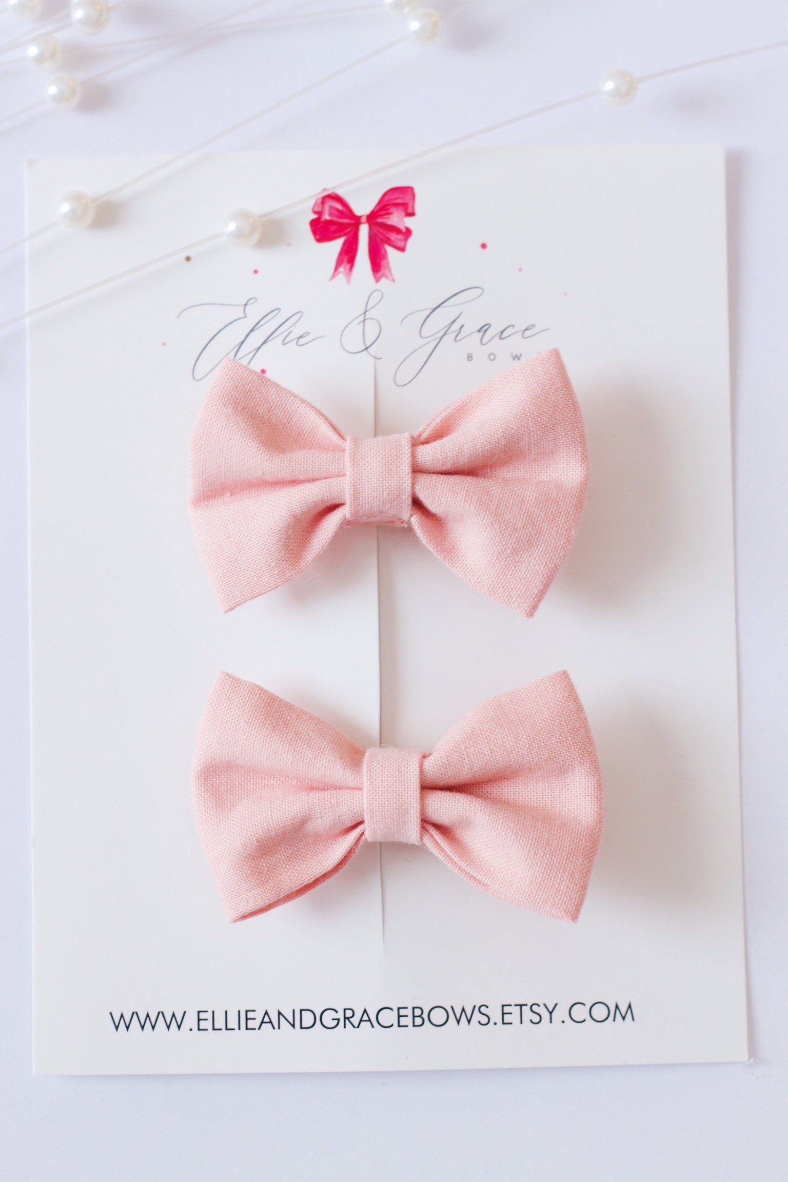 Blush Pink Cotton Pigtail Hair Bow Set: Toddler Girl Hair Clips