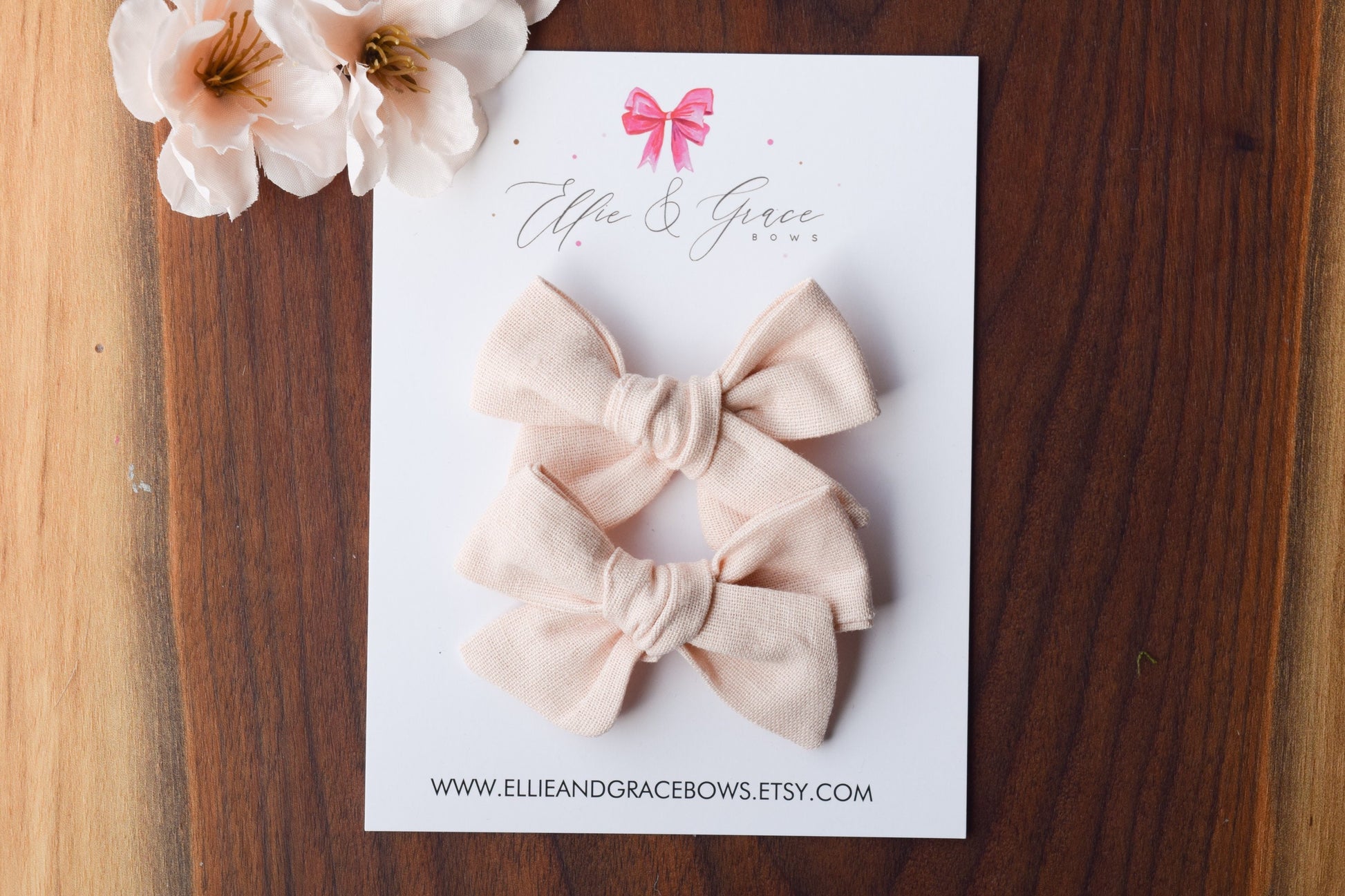 Blush Pink Linen Pigtail Bows - Hand Tied Bows - Alligator Clip Bows - Toddler Girl Hair Clips