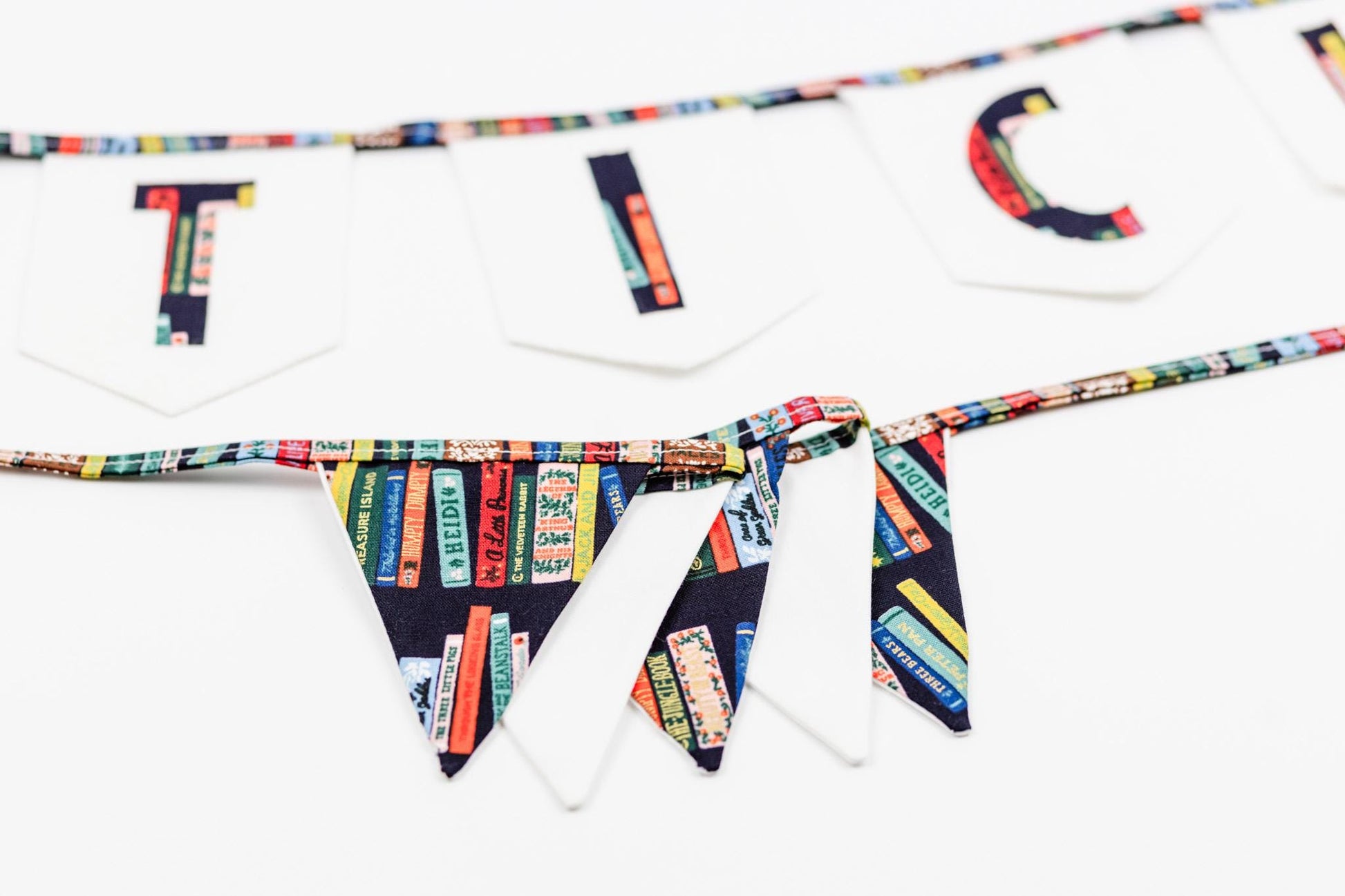 Book Themed Bunting Banner: Cotton Fabric Garland, Library Nursery Decor