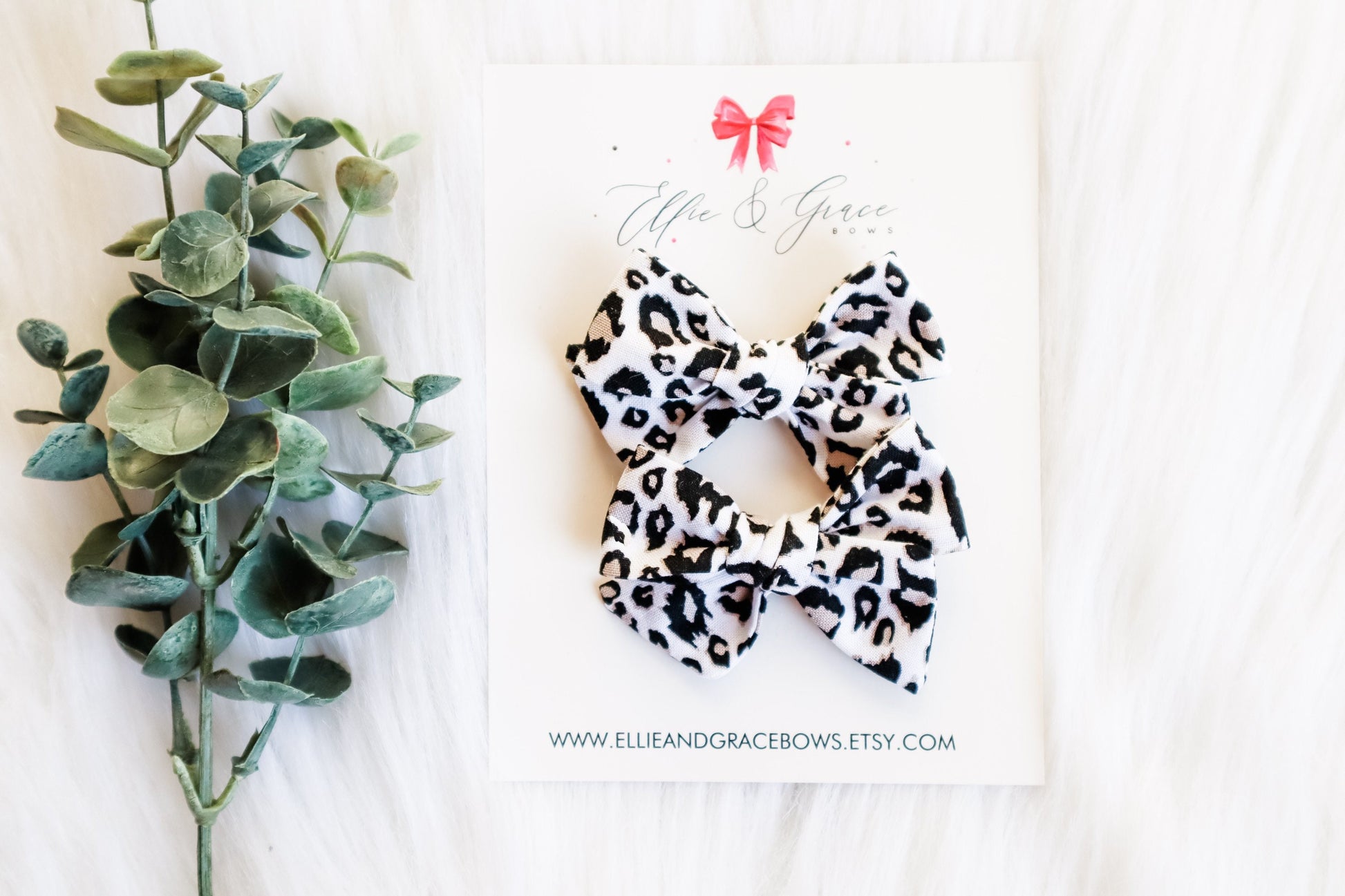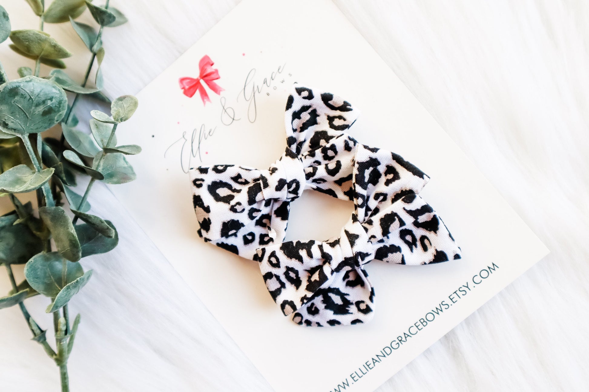 Cheetah Print Pigtail Bow Set: Cotton Alligator Hair Clips