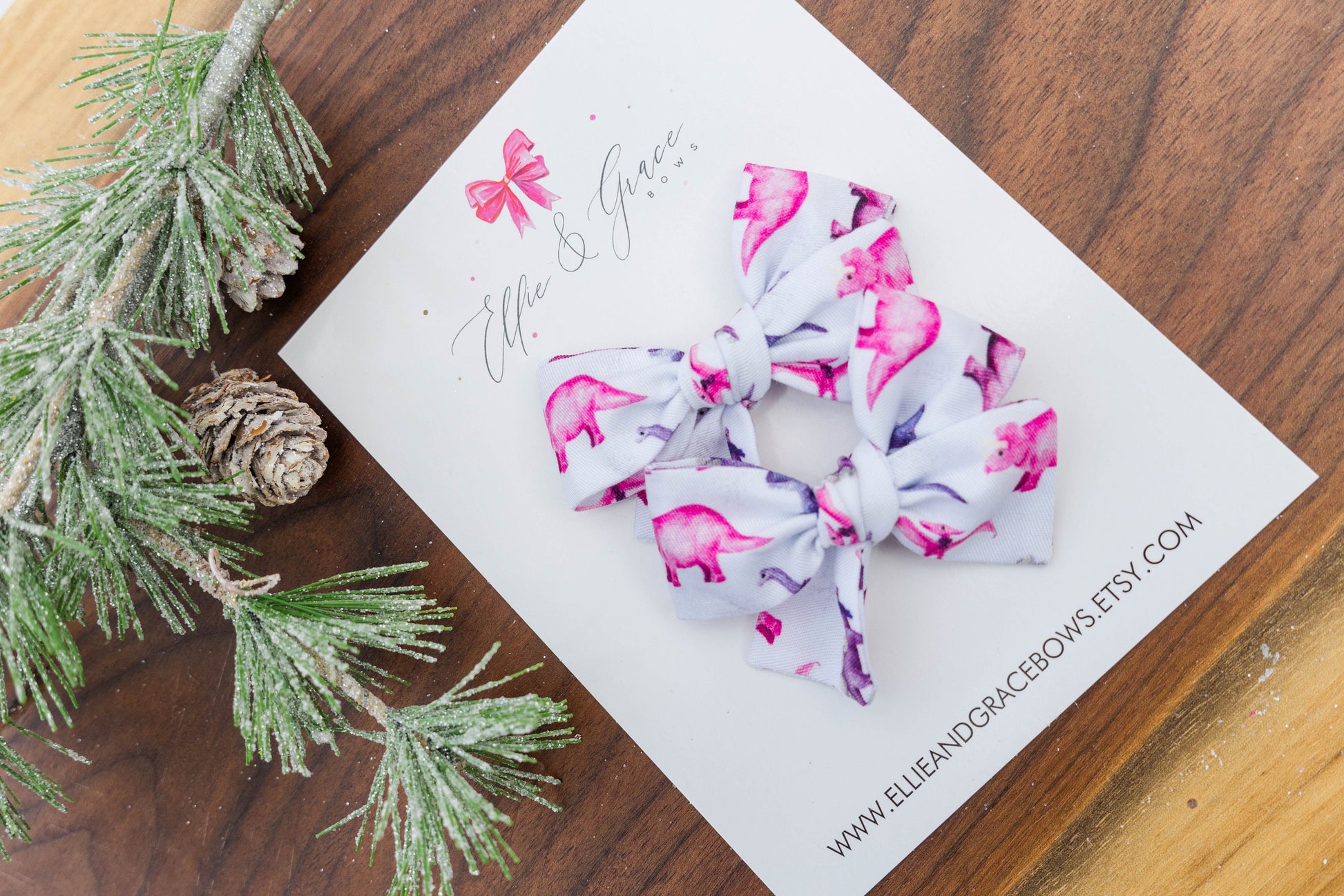 Christmas Dinosaur - Pink and Purple Hair Bow Set - Baby Bow Headband