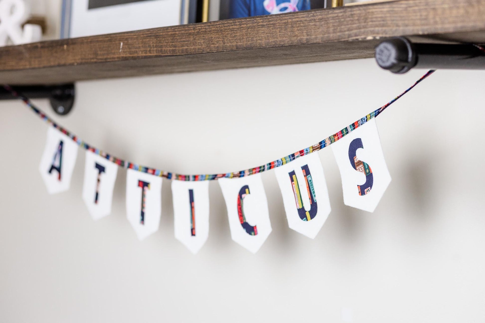 Celebrate your little reader with this charming **custom name bunting banner**, handmade with soft felt flags and cotton fabric letters featuring a colorful bookshelf print. Perfect for book lovers big and small, this banner adds a literary touch to nurseries, kids’ rooms, playrooms, or reading nooks.