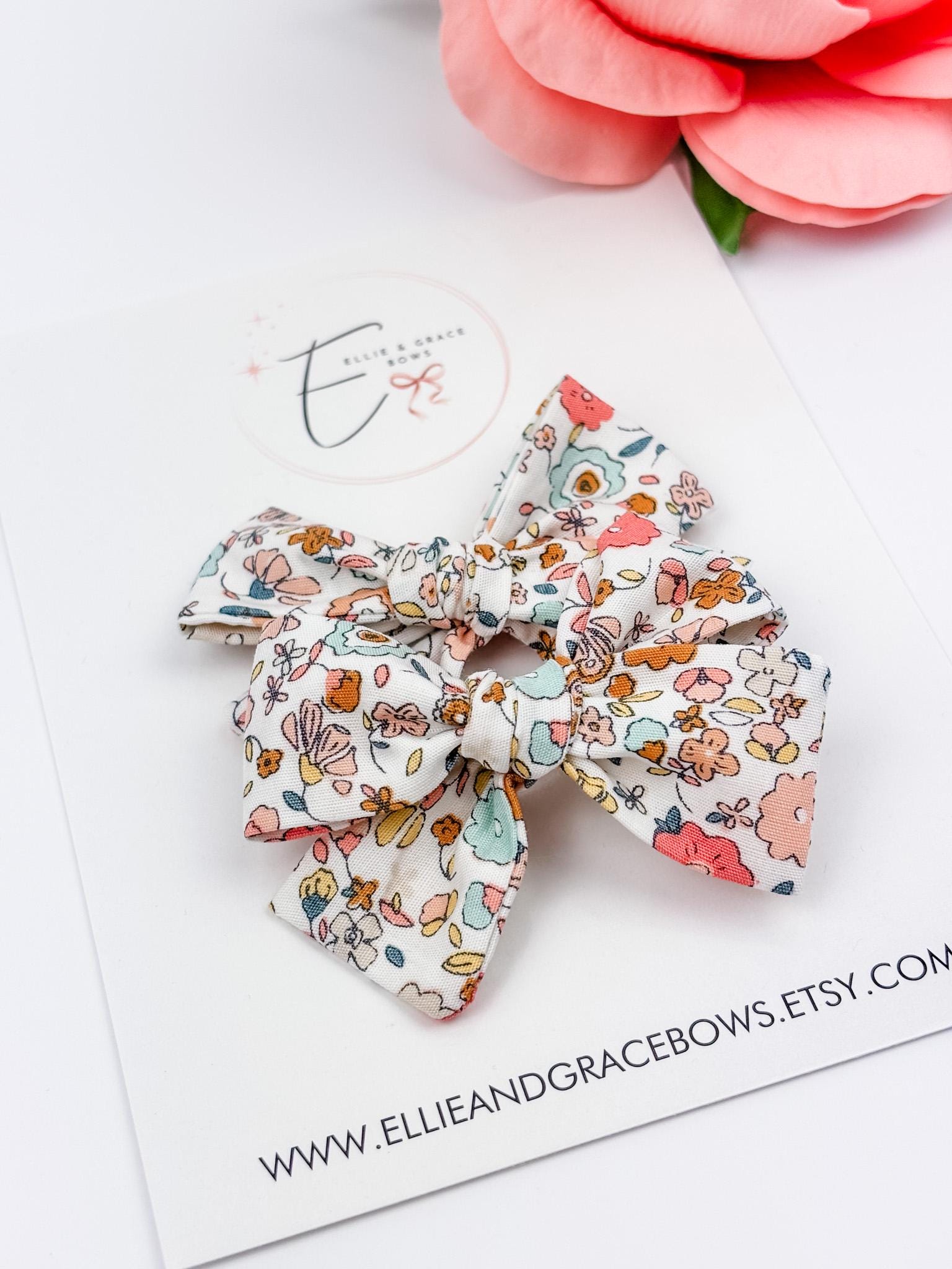 Handmade with care, these bows are perfect for adding a little floral flair to any outfit and also make a lovely gift for birthdays, baby showers, or just because.