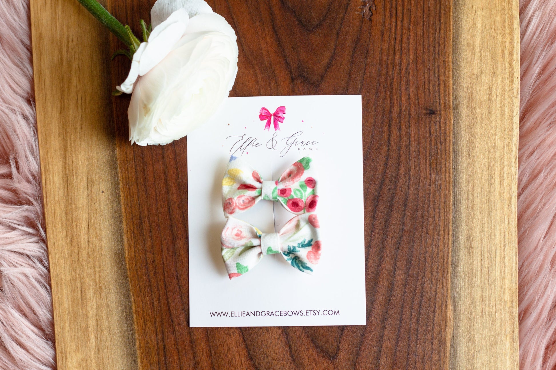 Floral Pigtail Hair Bow Set: Cream Cotton Hair Clips