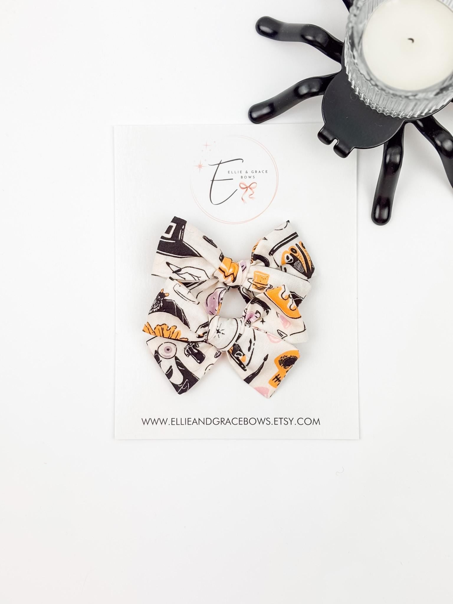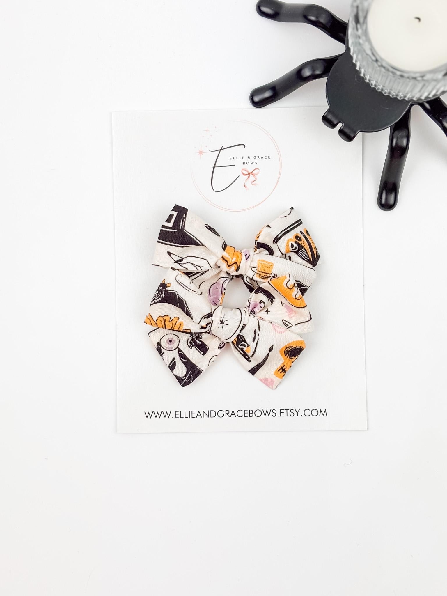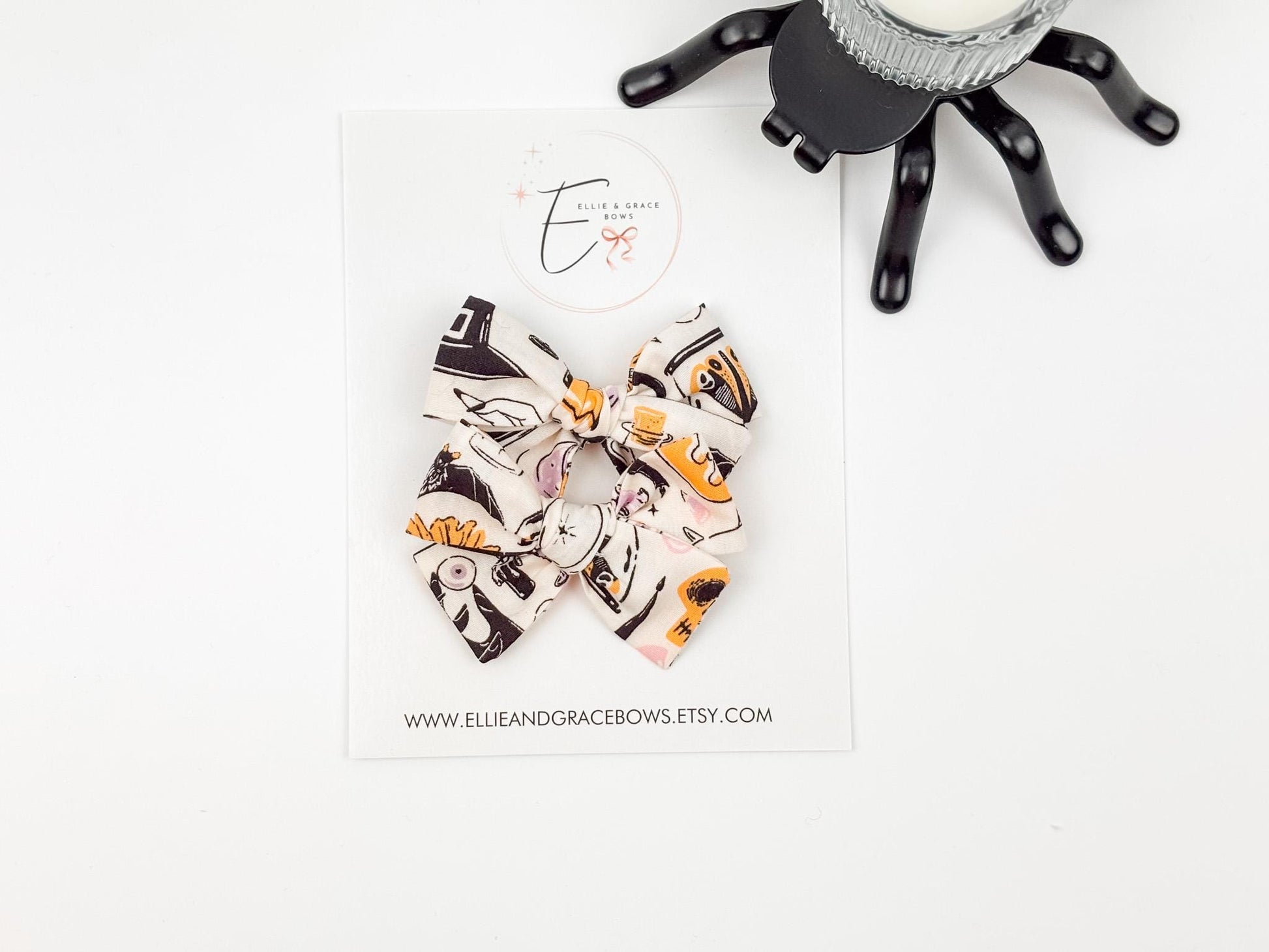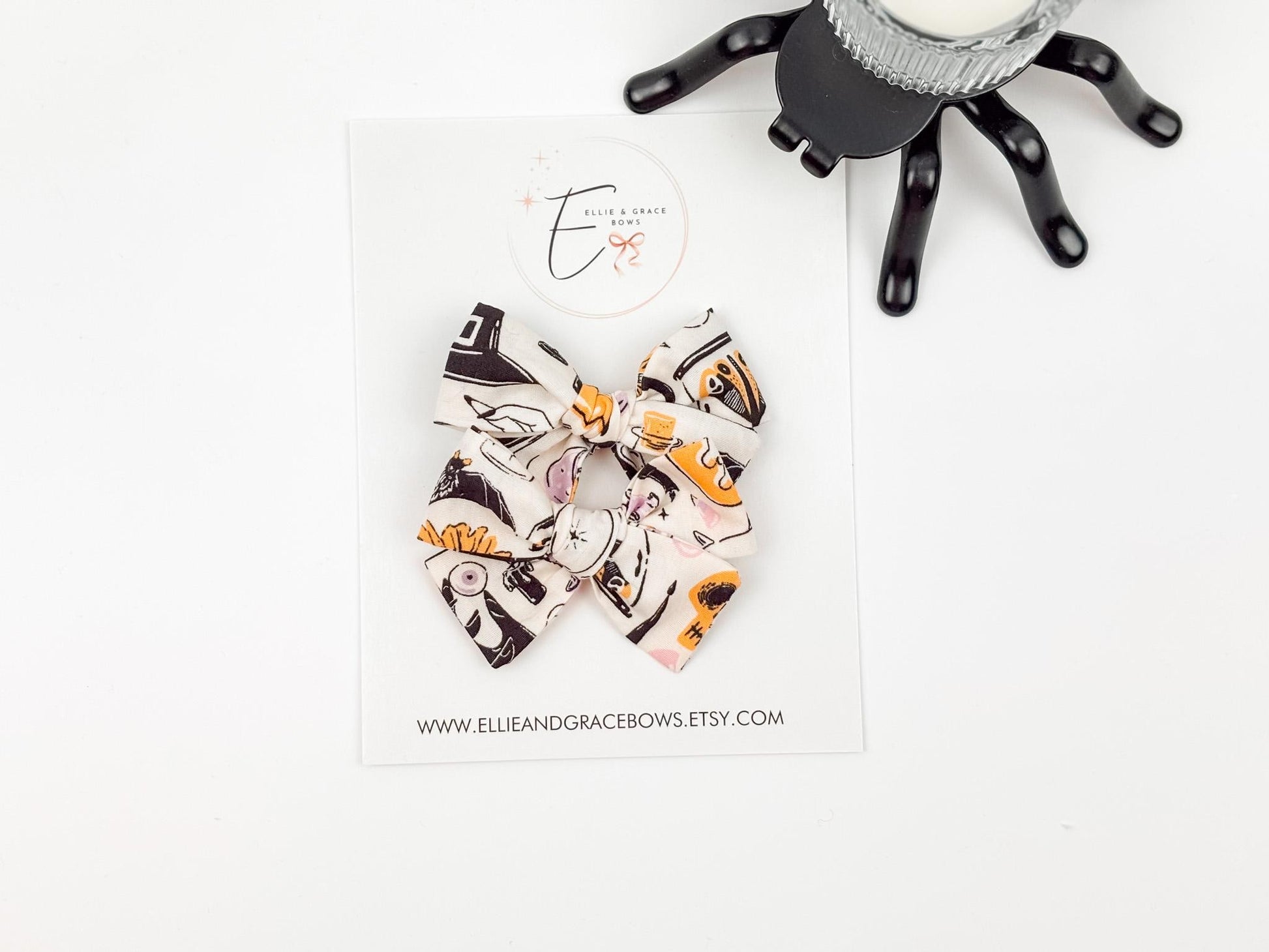 **Halloween Cotton Pigtail Bow Set | Spooky Print Hair Bows | Baby, Toddler & Girls Hair Accessories**