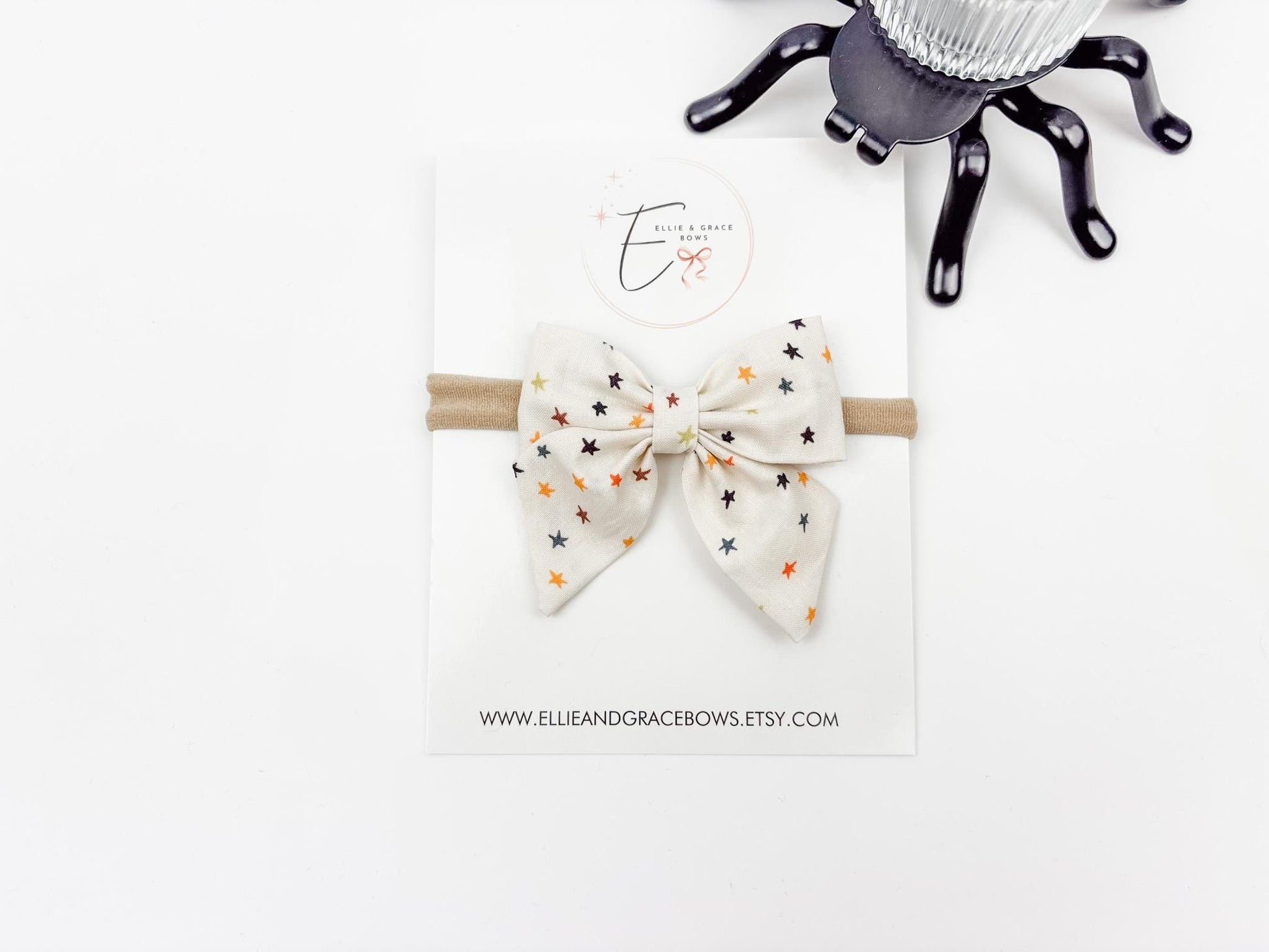**Halloween Cotton Sailor Bow | Cream Star Hair Bow | Baby, Toddler & Girls Hair Accessories**