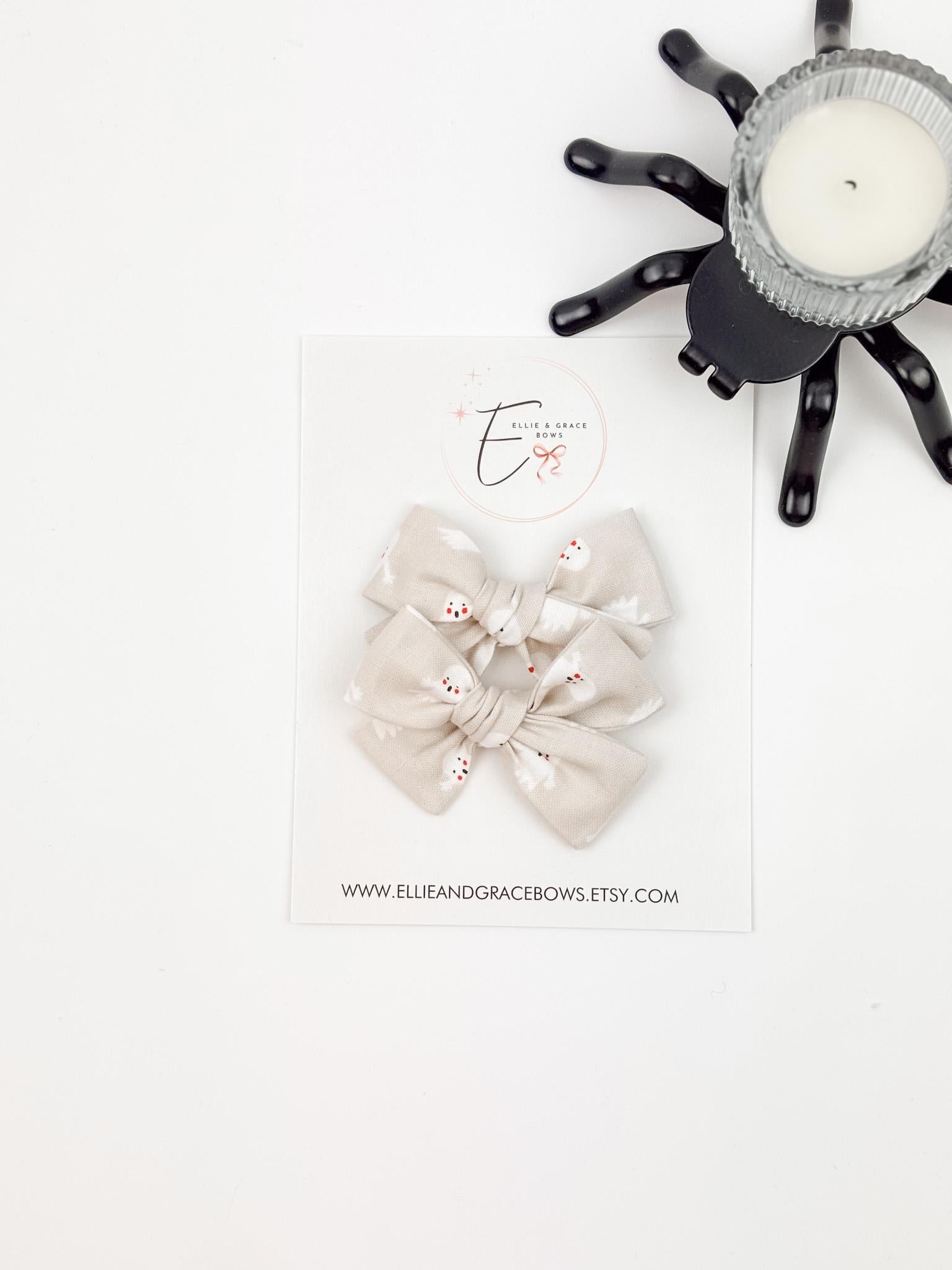 Dress up your little one in spooky-cute style this Halloween with our **cotton fabric pigtail bow set**! Each bow measures approximately **2.75 inches**, the perfect size for pigtails, and features a playful ghost pattern that adds a festive touch to any outfit.