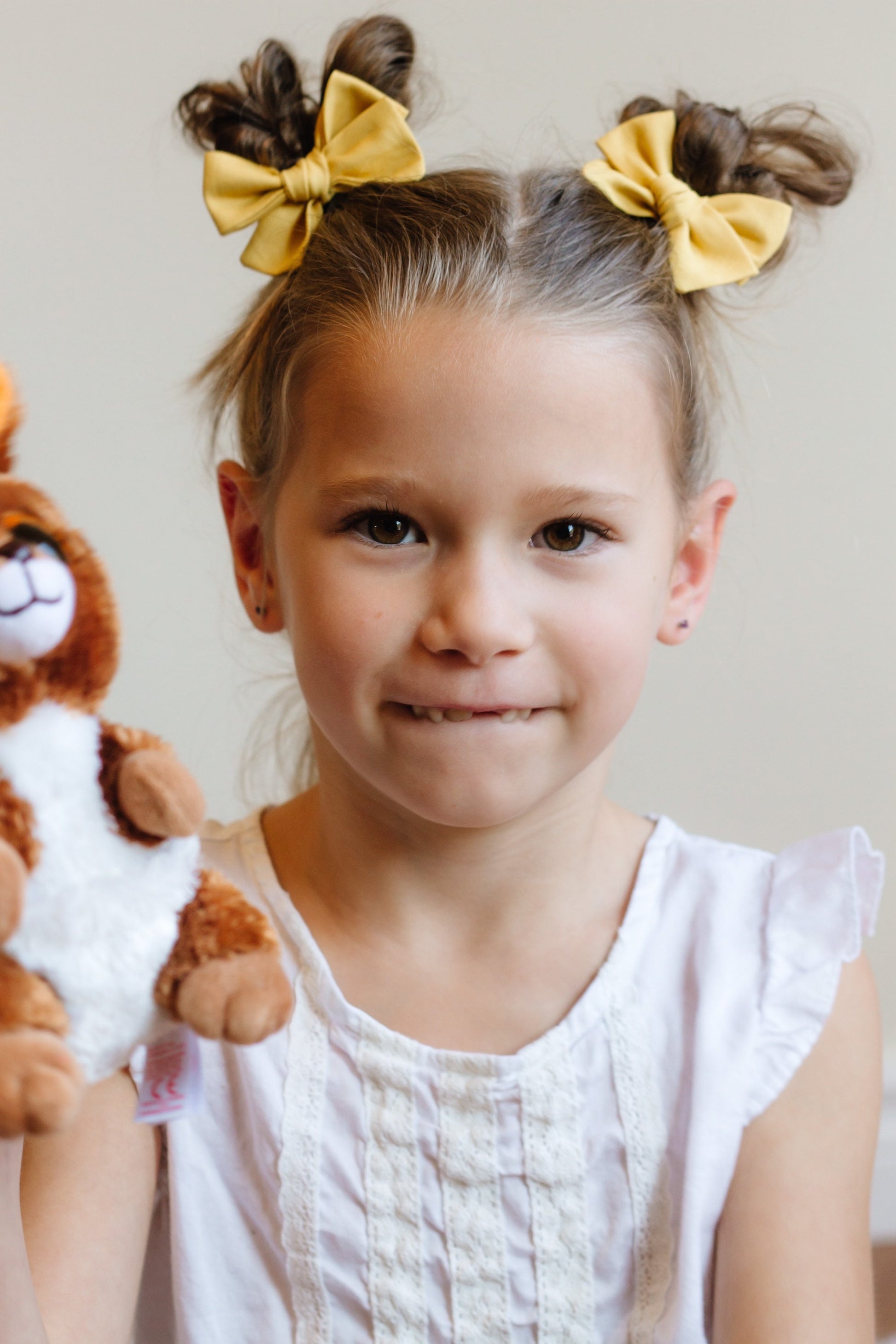 A trendy style this pigtail hair bow set is a must for your daughter’s outfits. Every girl needs a pair of hair clips that are trendy and feminine. The perfect fit for any child. You can use them as pigtail clips or use one bow for ponytails and holding bangs back.