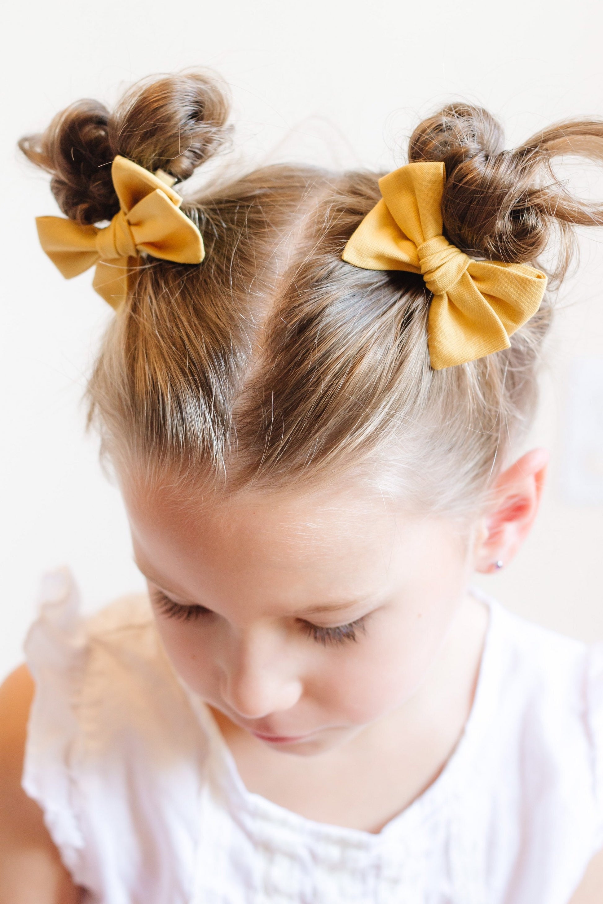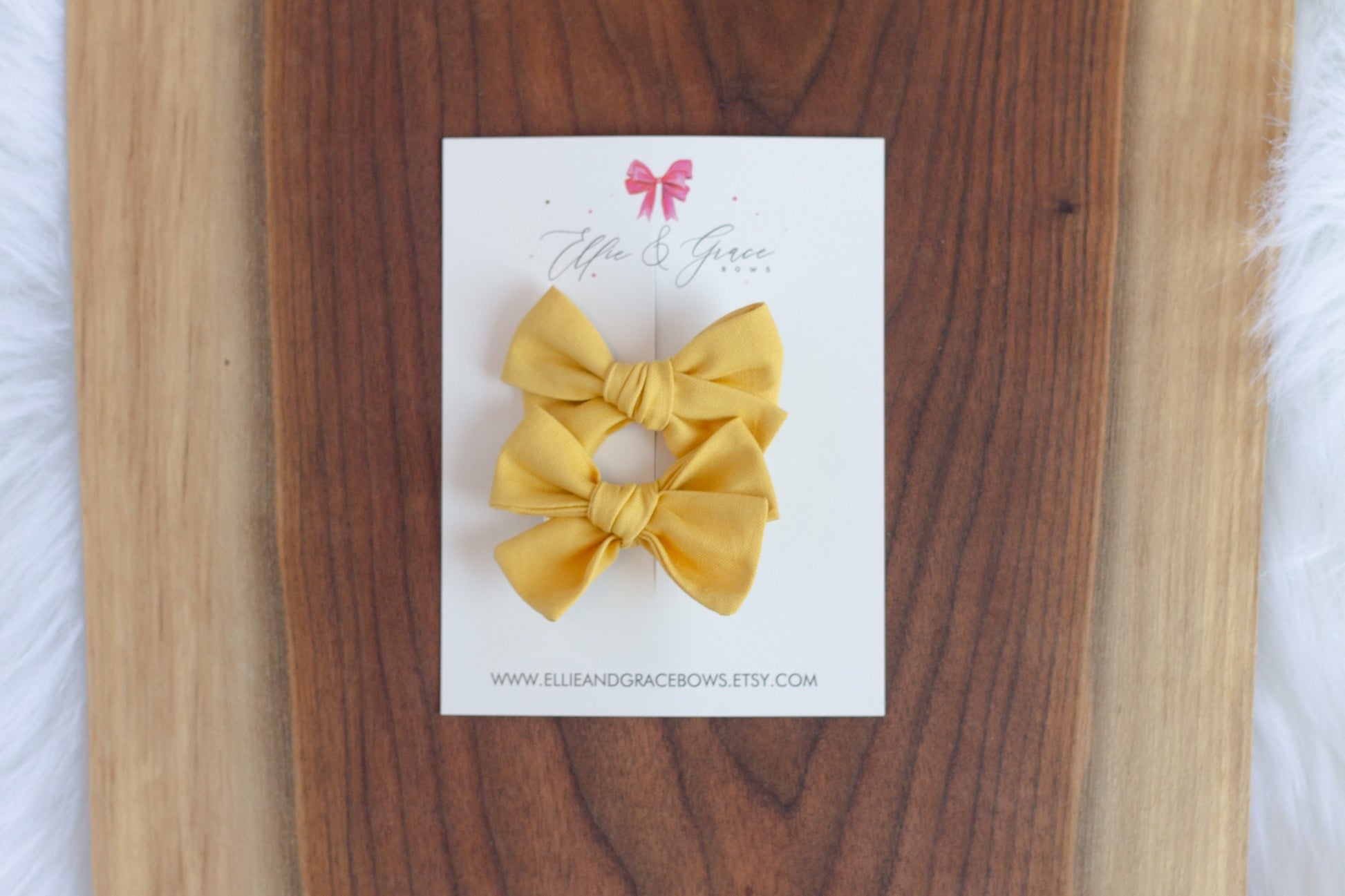 Mustard Yellow Fall Hair Clips - Bows for Girls - Pigtail Bow Set - Barrettes and Clips