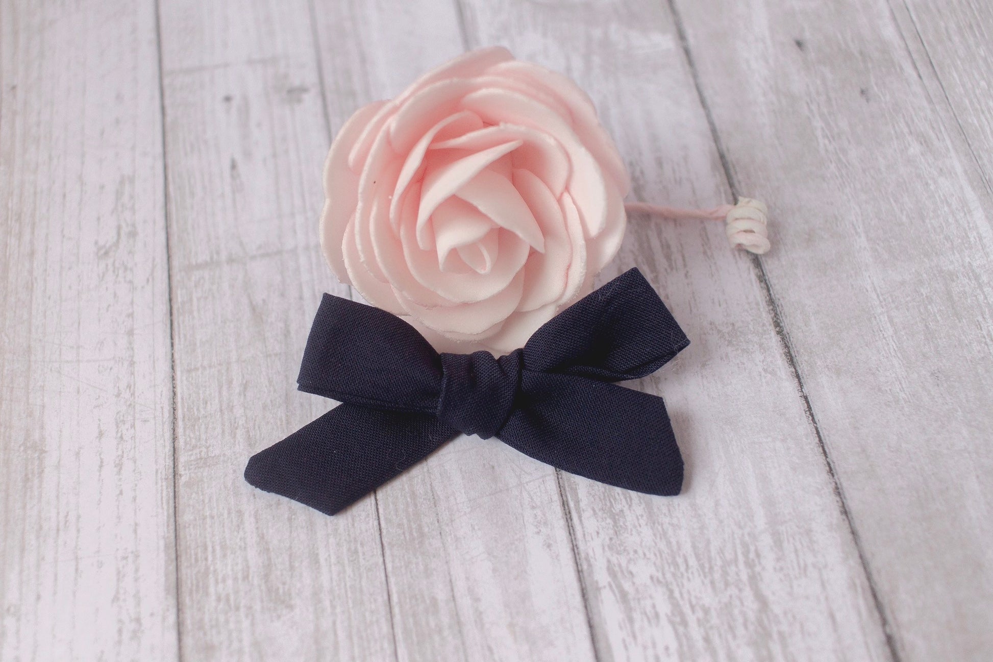 Dainty and sweet this baby girl headband is a definite must for your daughter’s hairbow collection. This hair bow is hand-tied and a dark rich navy blue. The perfect fit for any child, the nylon headband is so soft and stretchy, or the alligator clip is perfect for ponytails and holding bangs back.