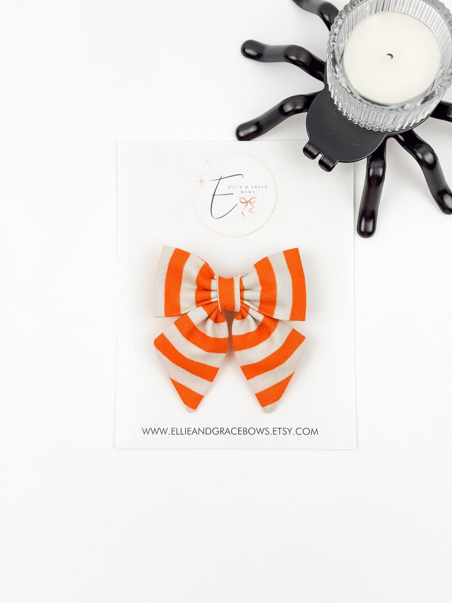 **Halloween Cotton Pigtail Bow Set | Orange & White Stripe Hair Bows | Baby, Toddler & Girls Hair Accessories**