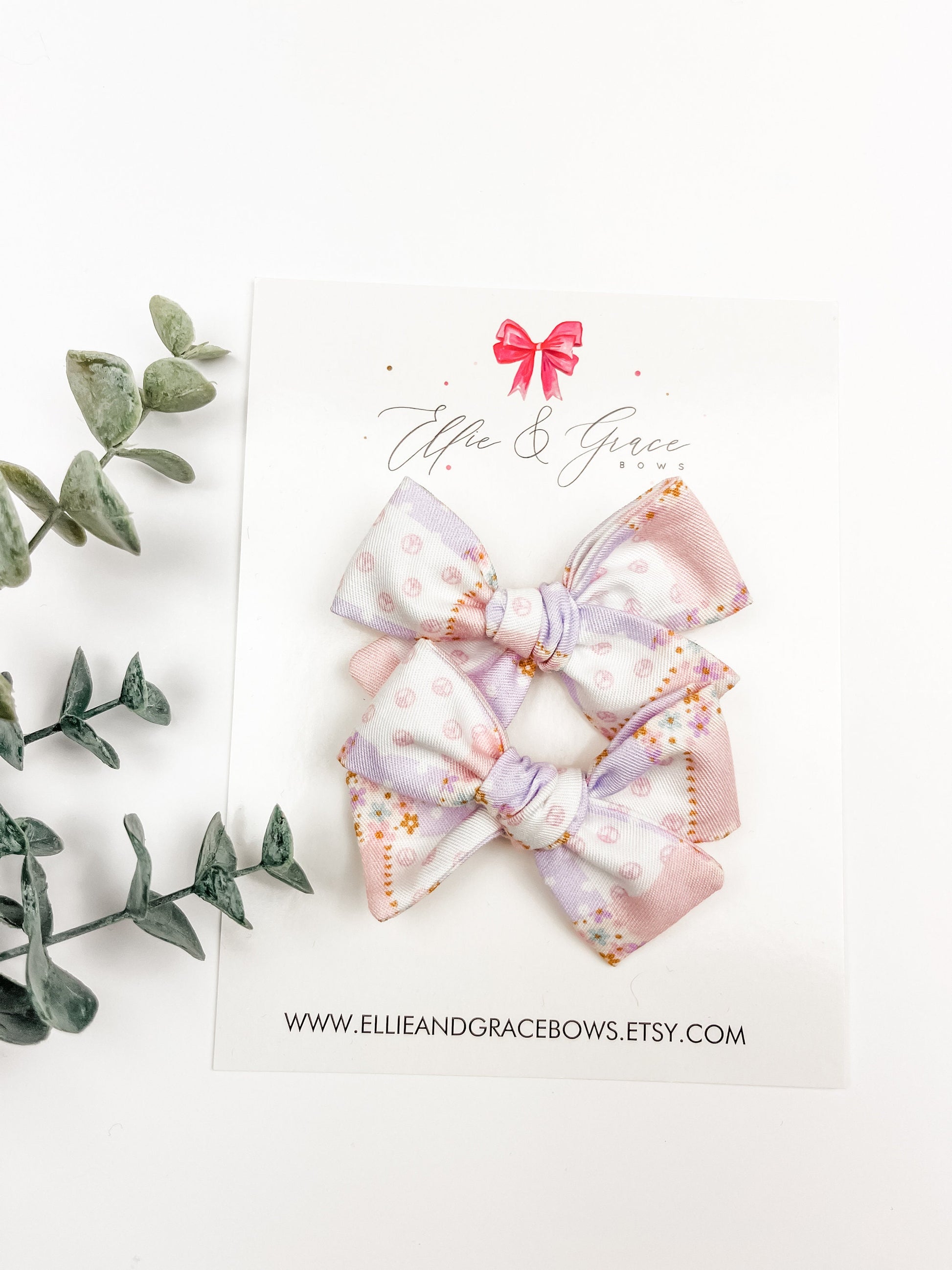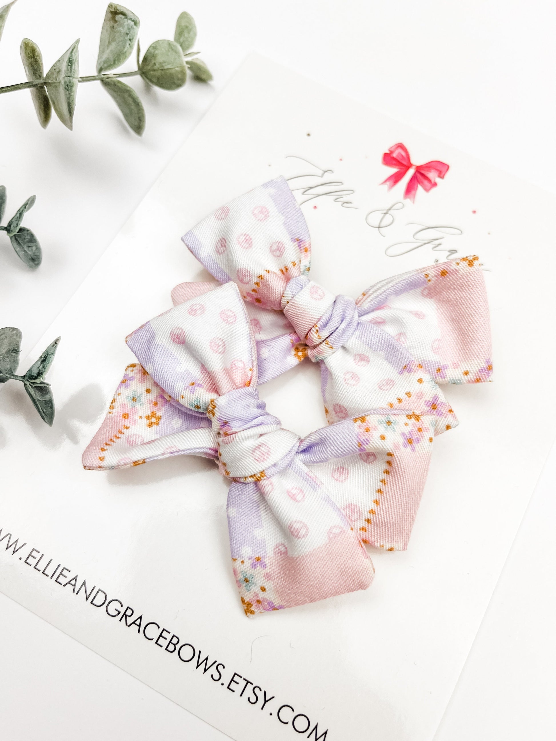 Our hair bows are handmade using the same fabric as shown in the above photo, however please be advised that there may be a slight difference in pattern placement.