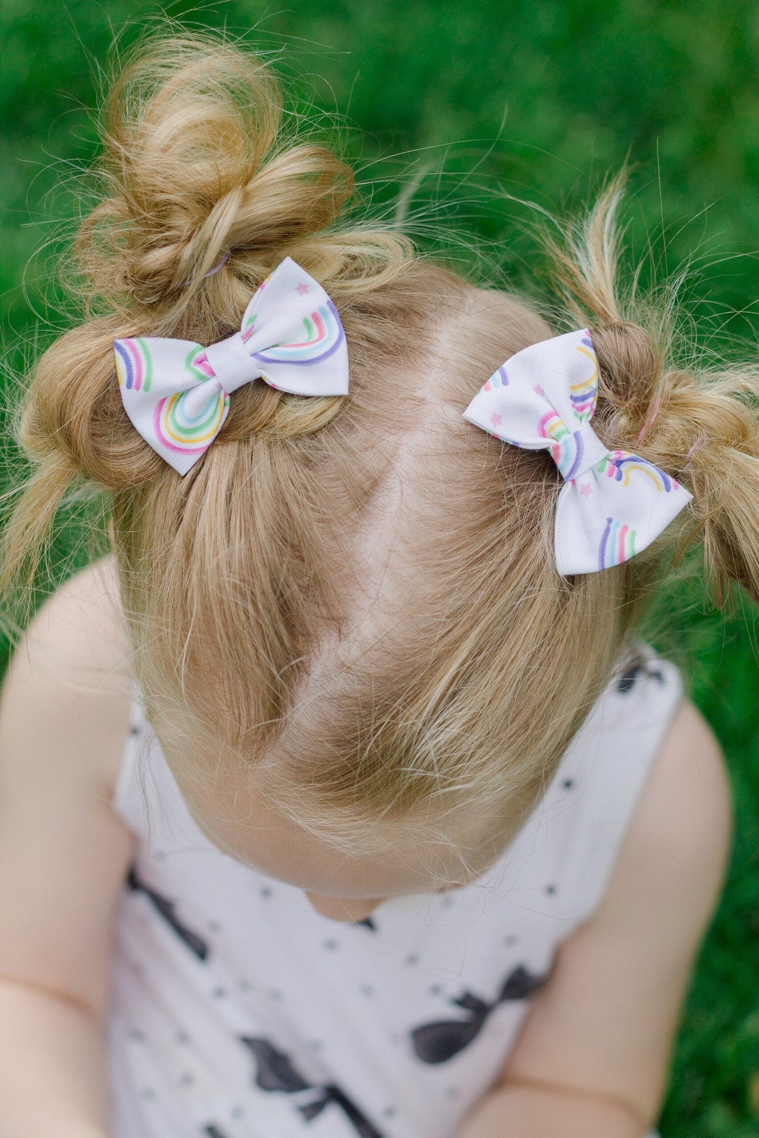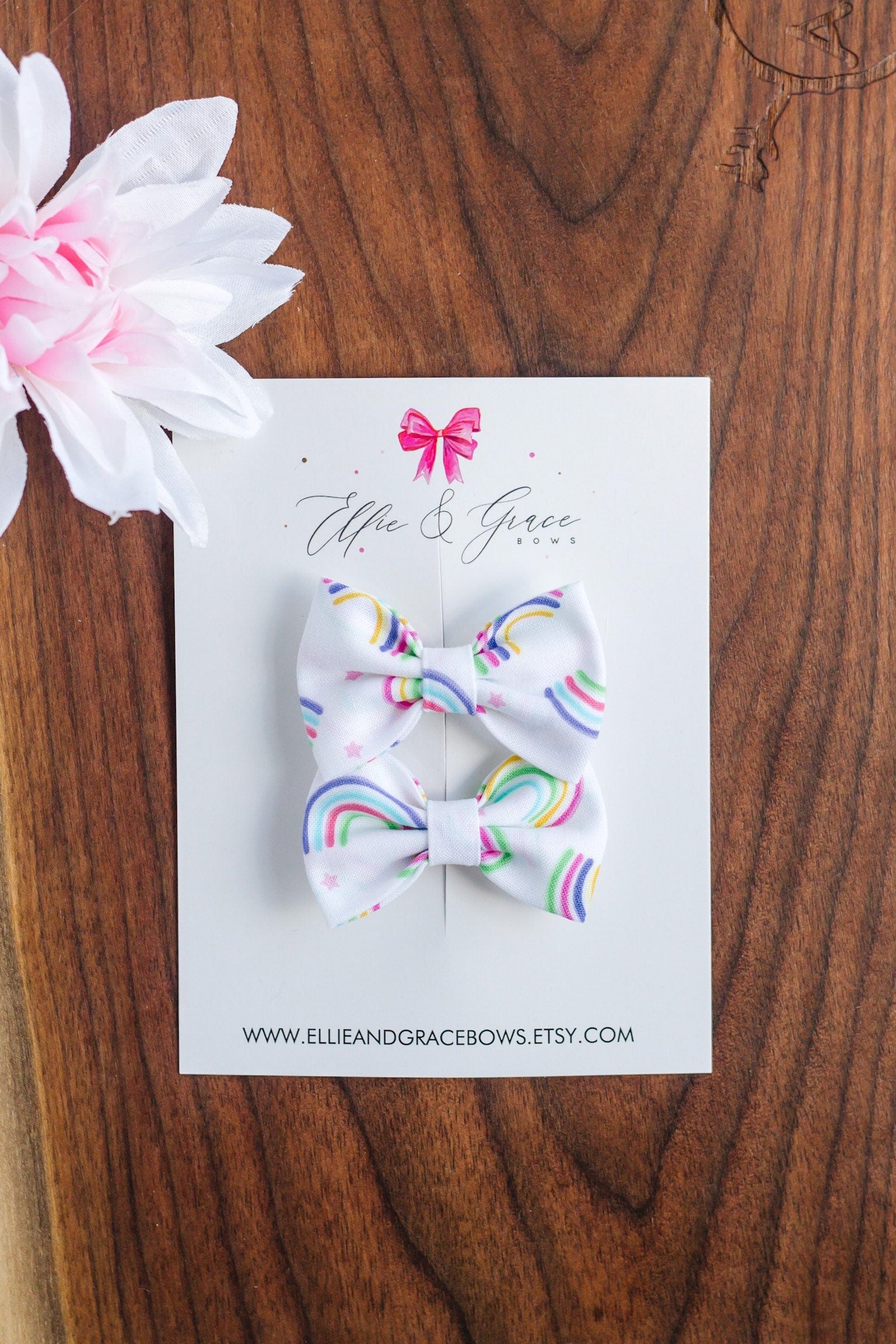 Rainbow Pigtail Bow Set: Cotton Fabric Hair Clips - 2 Inch