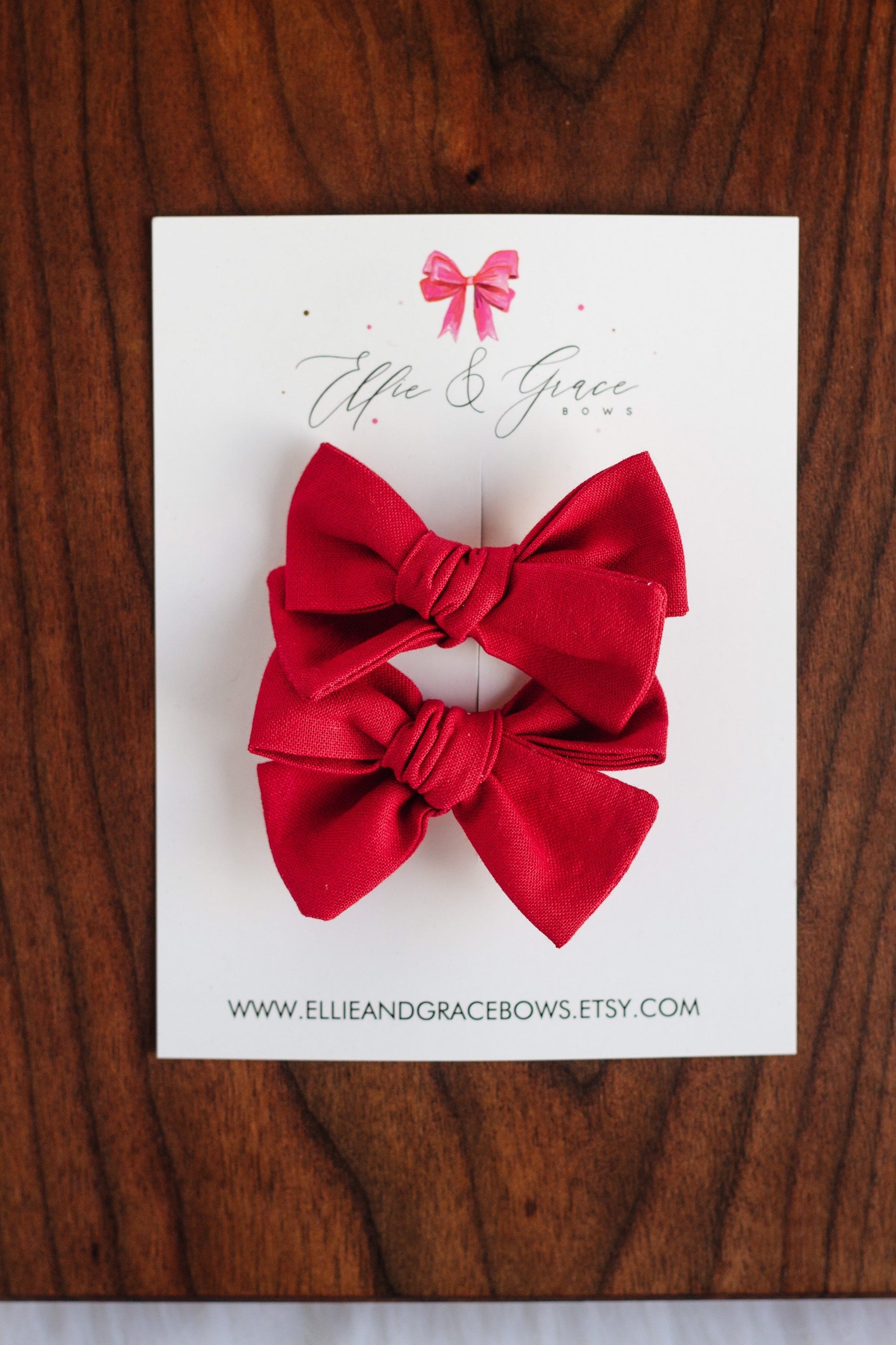 Red Christmas Pigtail Bow Set: Cotton Baby Hair Clips