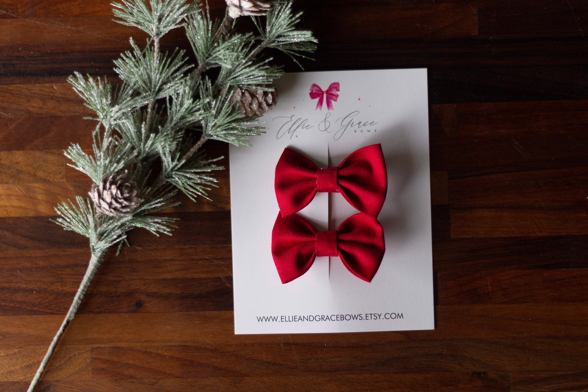 Red Pigtail Bow Set: Cotton Hair Clips for Toddler Girl