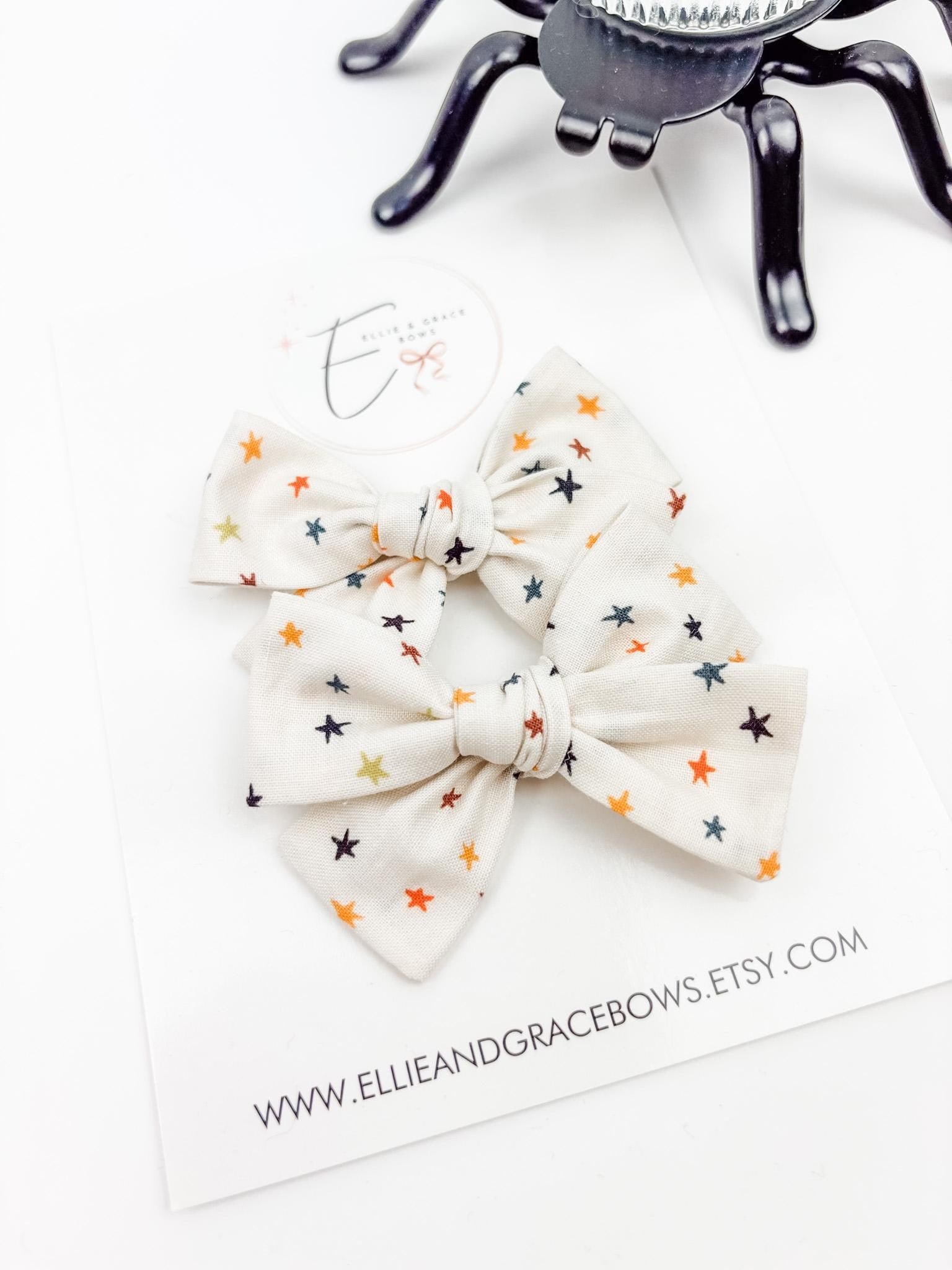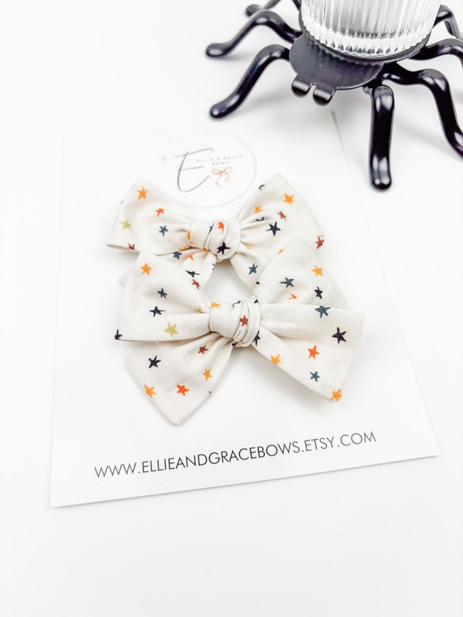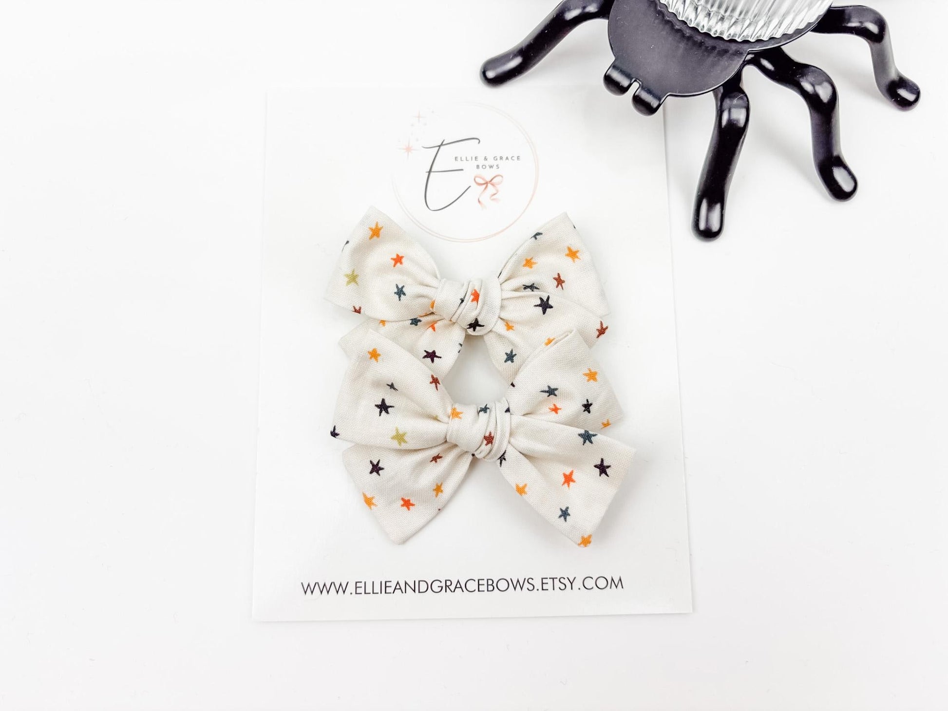 **Halloween Cotton Pigtail Bow Set | Star Print Hair Bows | Baby, Toddler & Girls Hair Accessories**