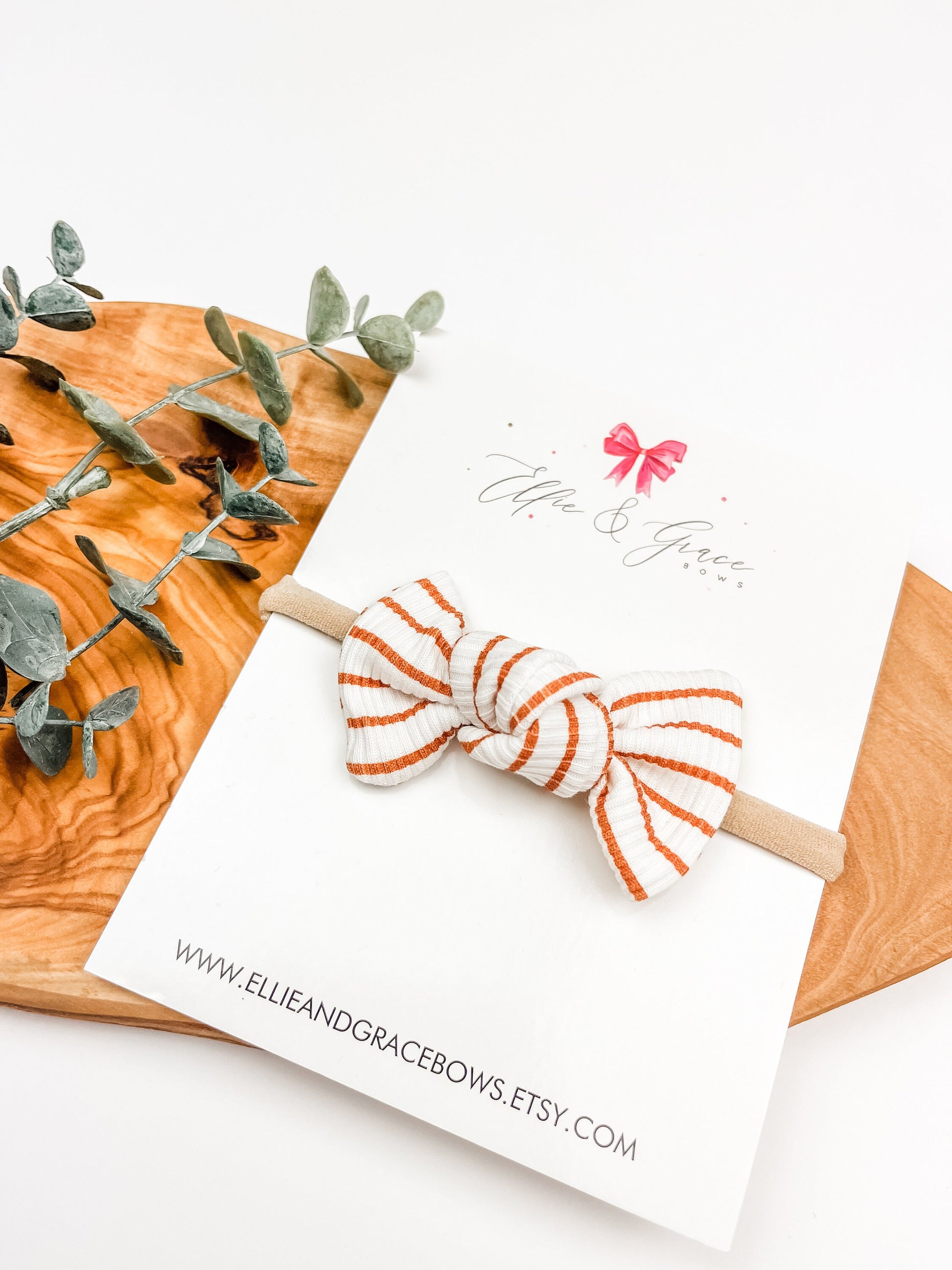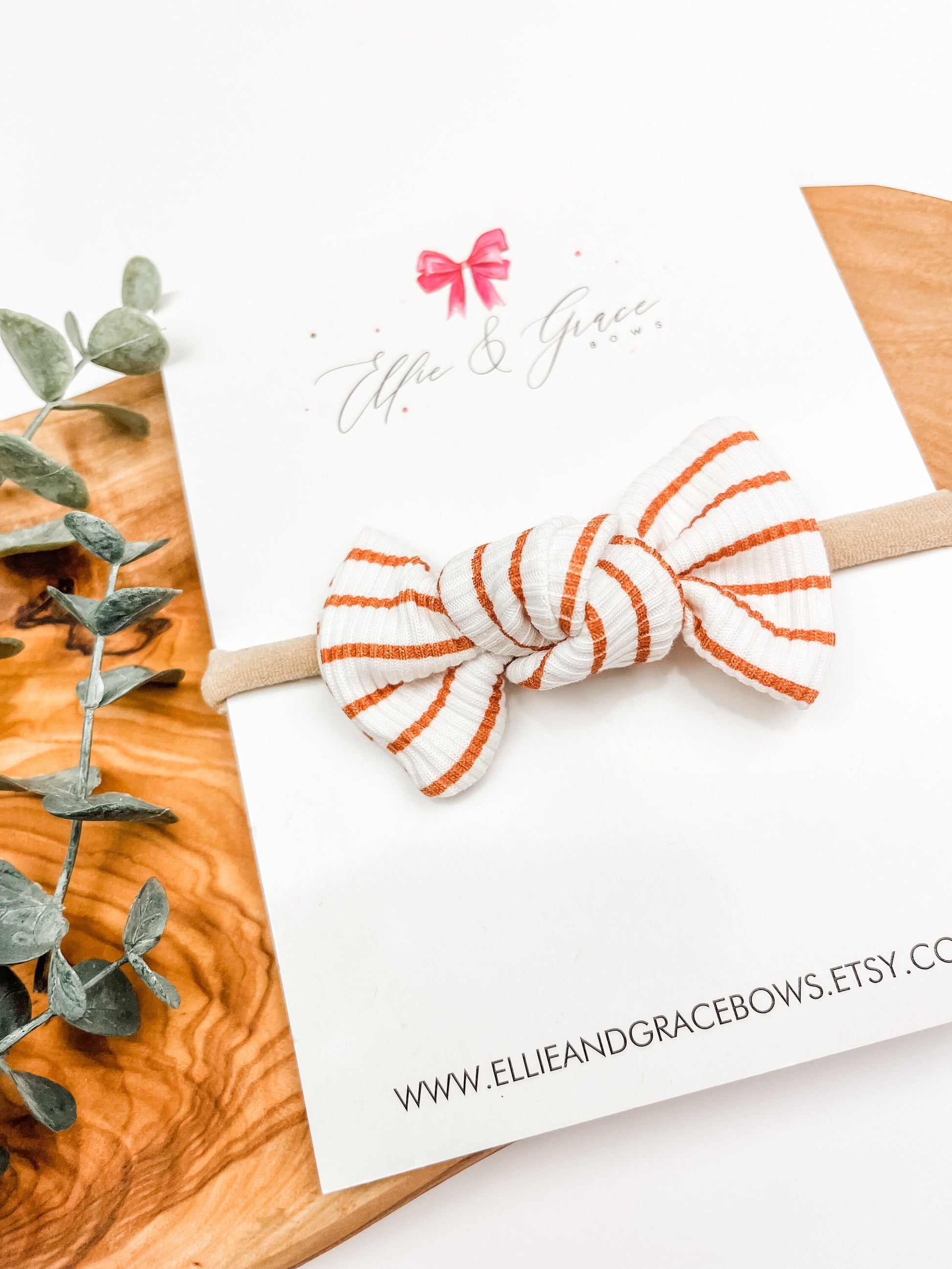 Striped Baby Bow Headband: Brown & White Ribbed Hair Bow