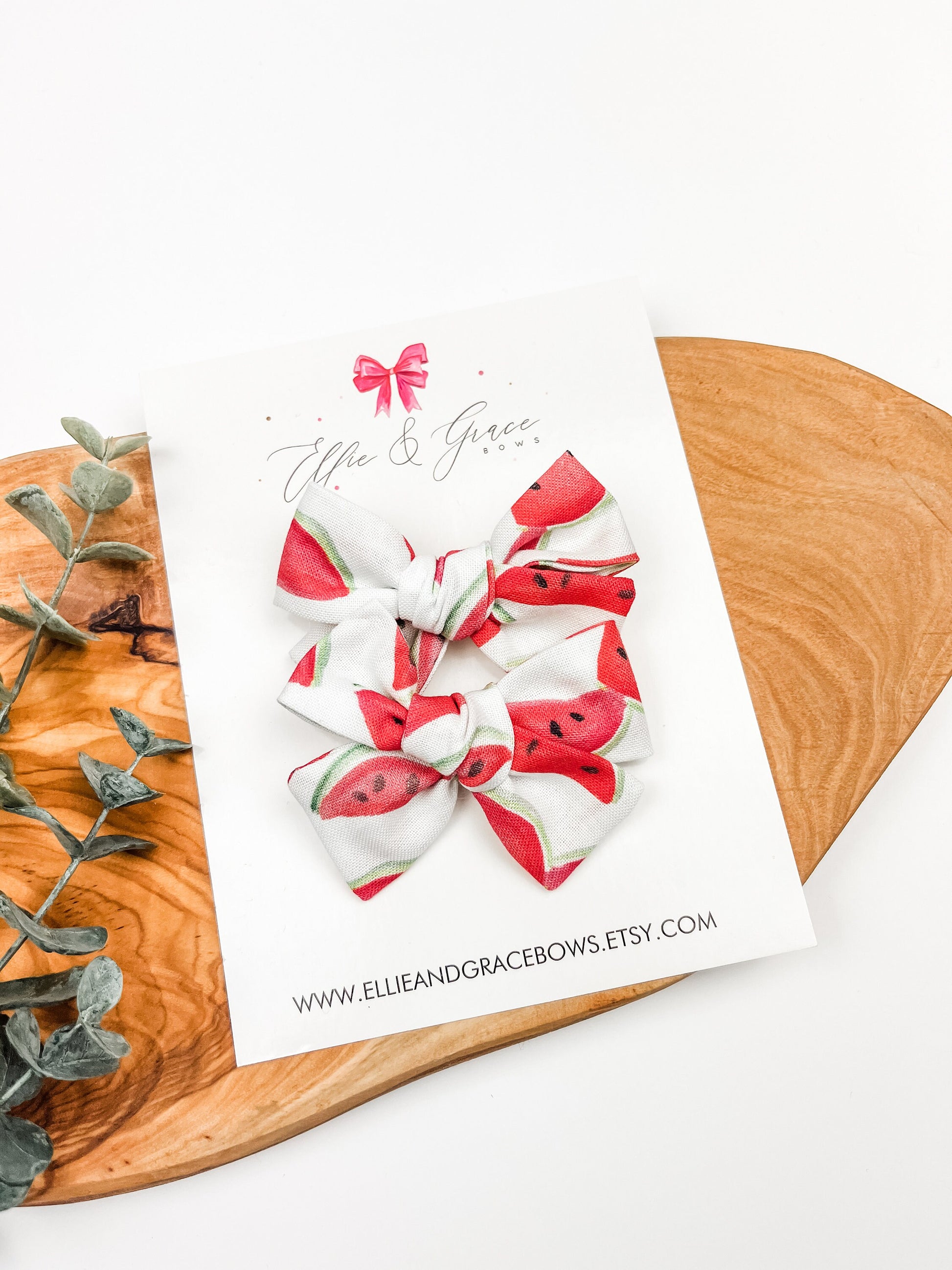 Toddler Girl Watermelon Pigtail Bow Set - Summer Hair Bows
