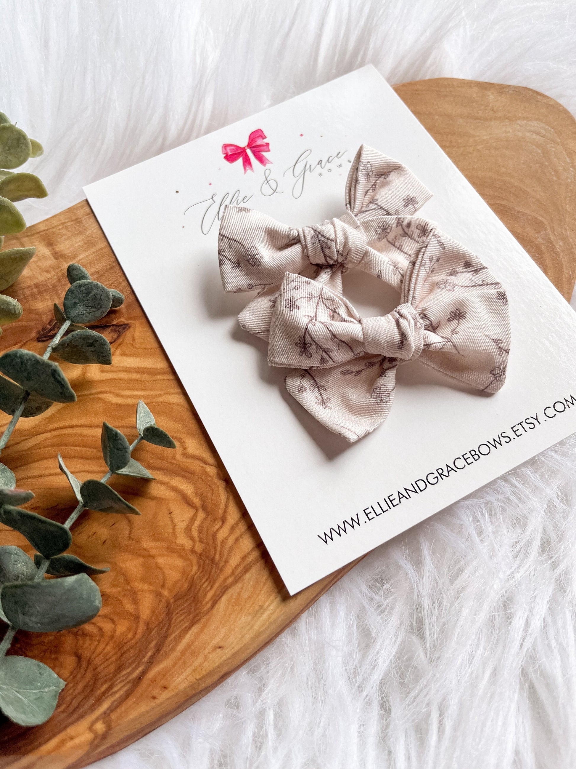 Wildflower Hair Bows - Cotton Fabric Pigtail Bow Set - Pinwheel Bows